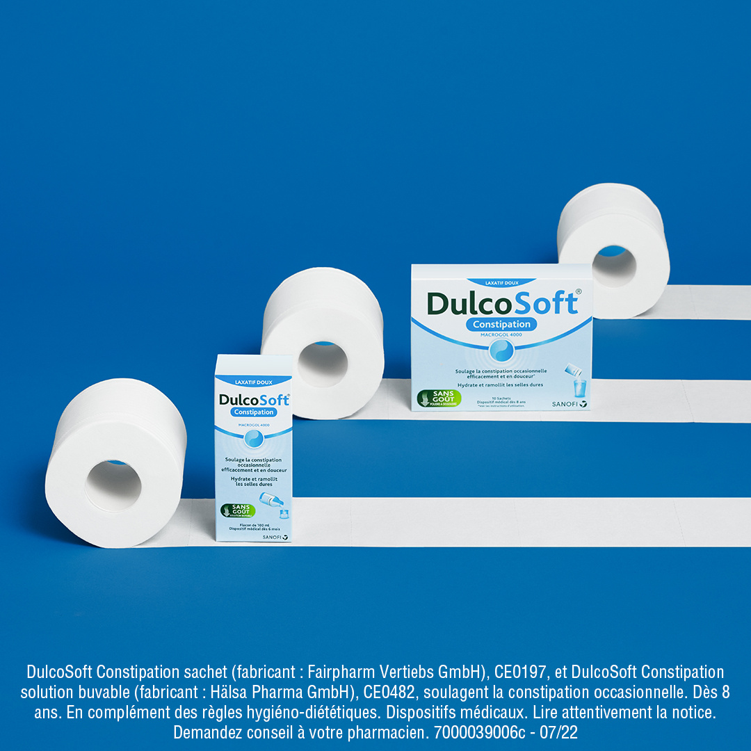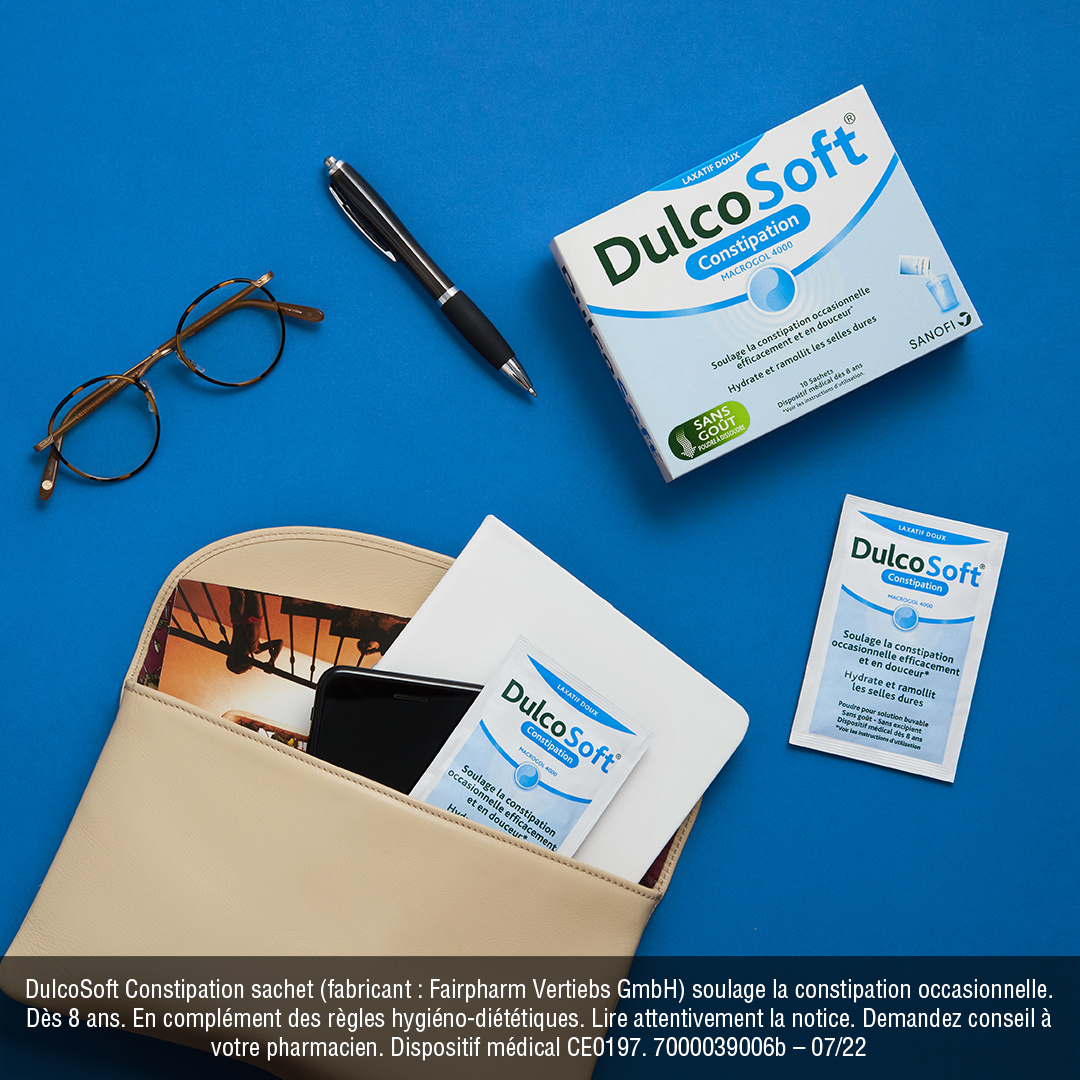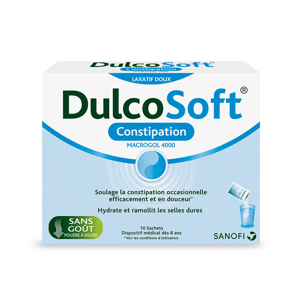 Sanofi DulcoSoft Constipation 10 Sachets est un dispositif médical sous forme de poudre à dissoudre qui est utilisé dès 8 ans pour le traitement symptomatique de la constipation occasionnelle et pour le ramollissement des selles dures. Sans goût : peut facilement être mélangée avec des boissons chaudes ou froides (eau plate ou pétillante, jus d'orange ou jus de pomme, thé glacé ou eau chaude). Sans gluten, sans sucre et sans excipient.