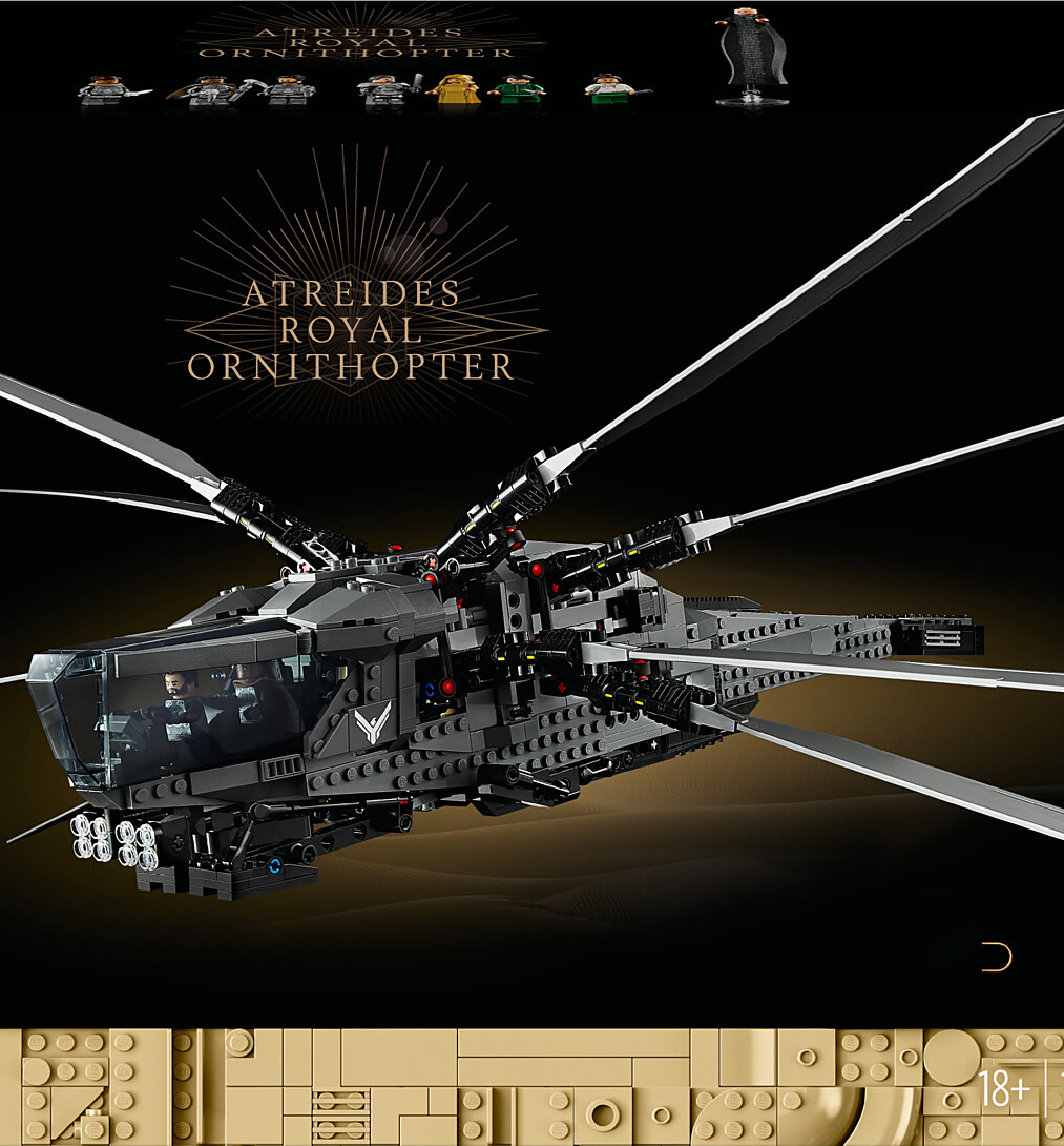 Voici une idée de cadeau sur le thème du film épique pour les fans du film Dune et des kits de modélisme à construire : l'ensemble LEGO Icons pour adultes, Dune Atreides Royal Ornithopter (10327) Offrez l'avion légendaire de la Maison des Atréides comme cadeau d'anniversaire ou de Noël aux amateurs de gadgets cinématographiques ; un kit de modélisme pour adultes à collectionner, conçu pour faire une pause relaxante dans le stress quotidien Ce véhicule LEGO à construire comprend des ailes qui s'ouvrent, un train d'atterrissage rétractable et un cockpit qui s'ouvre L'ensemble comprend 8 personnages emblématiques du film : Paul Atreides, Lady Jessica, Gurney Halleck, Chani, Leto Atreides, Liet Kynes, Duncan Idaho et le Baron Harkonnen dans ses longues robes Découvrez un espace de détente avec la gamme stimulante de jeux de construction LEGO spécialement conçus pour les adultes L'application LEGO Builder contient une version numérique des instructions de construction incluses dans ce jeu.