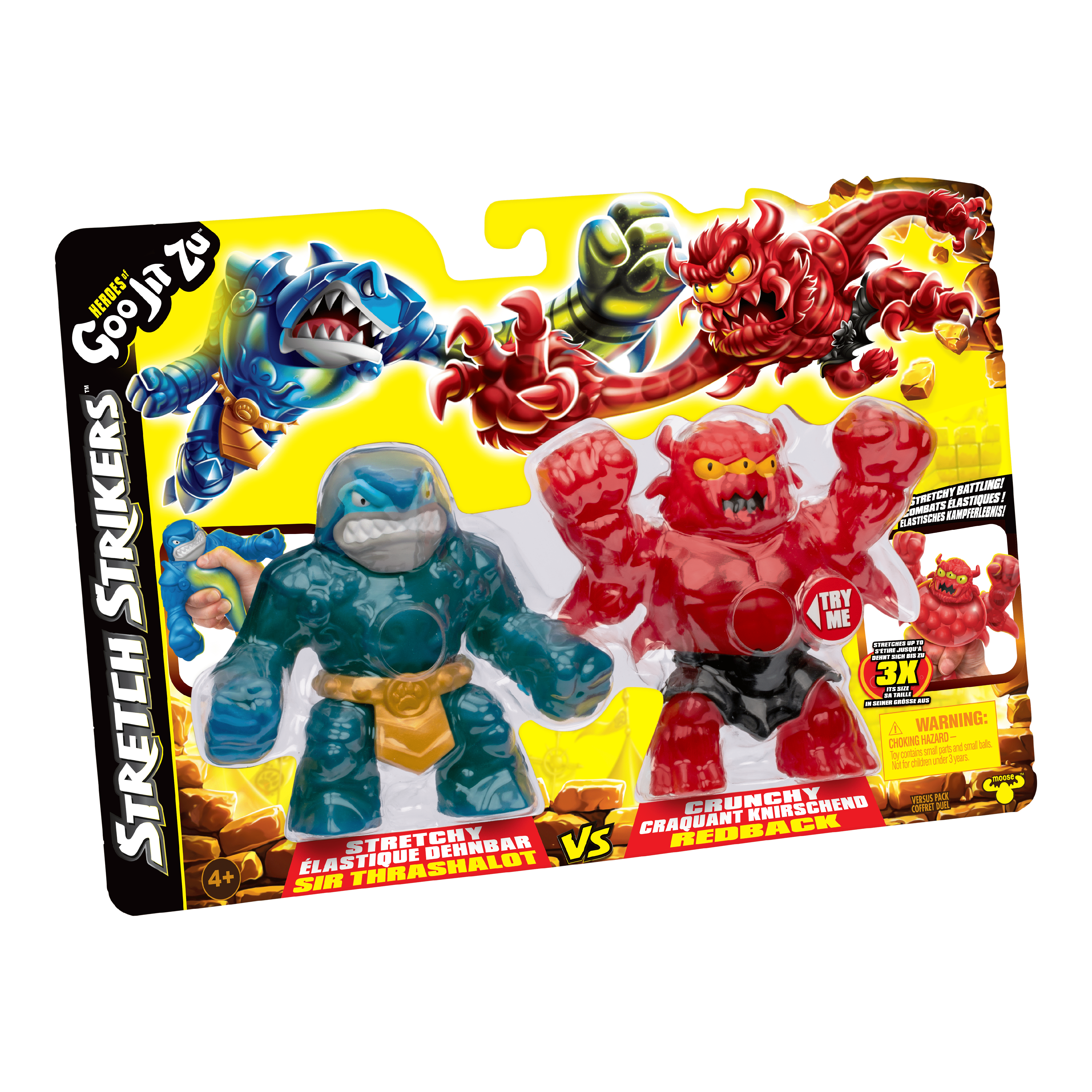 L'original Heroes Of Goo Jit Zu Stretch STRIKERS ! Retrouve Thrashalot vs Barbarian Redback, tes héros gluants équipés d'armures de guerriers pour un combat épique ! 2 figurines de 11cm.