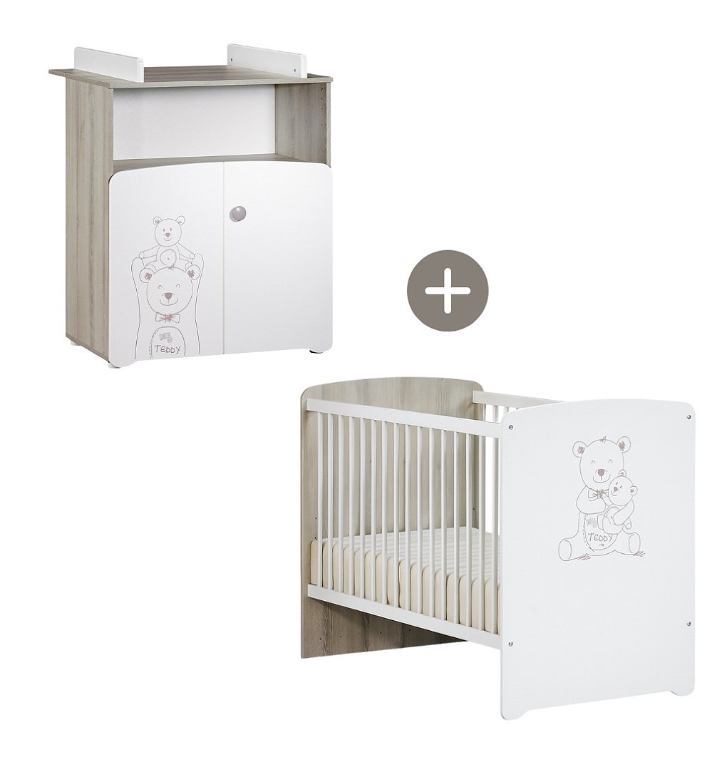 Chambre bébé Duo: Lit bébé 120x60+ Commode à langer 2 portes Teddy