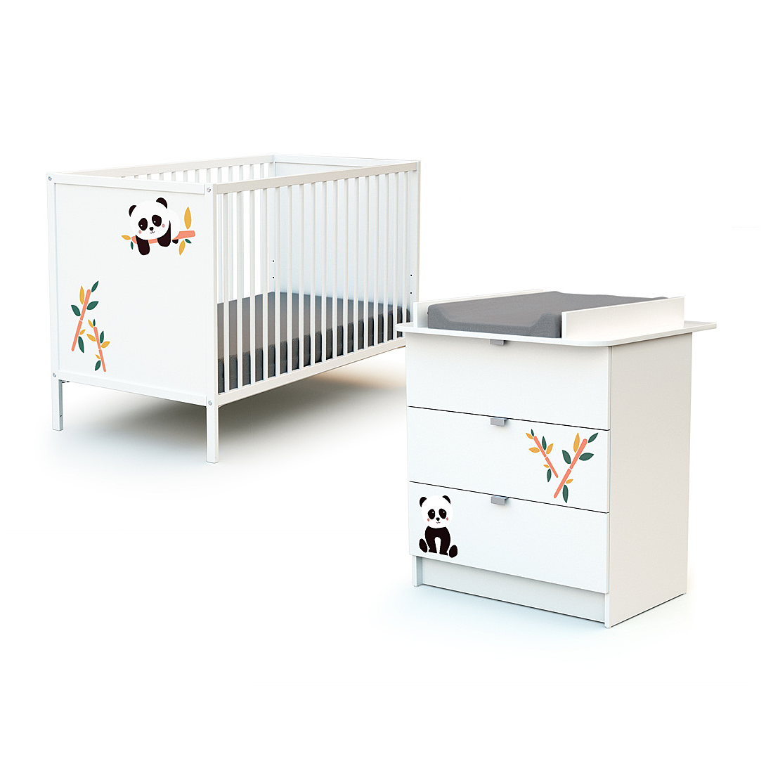 | Libellé | Duo Lit Bébé et Commode Panda Blanc |