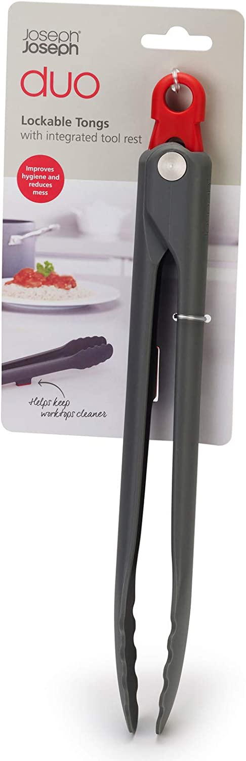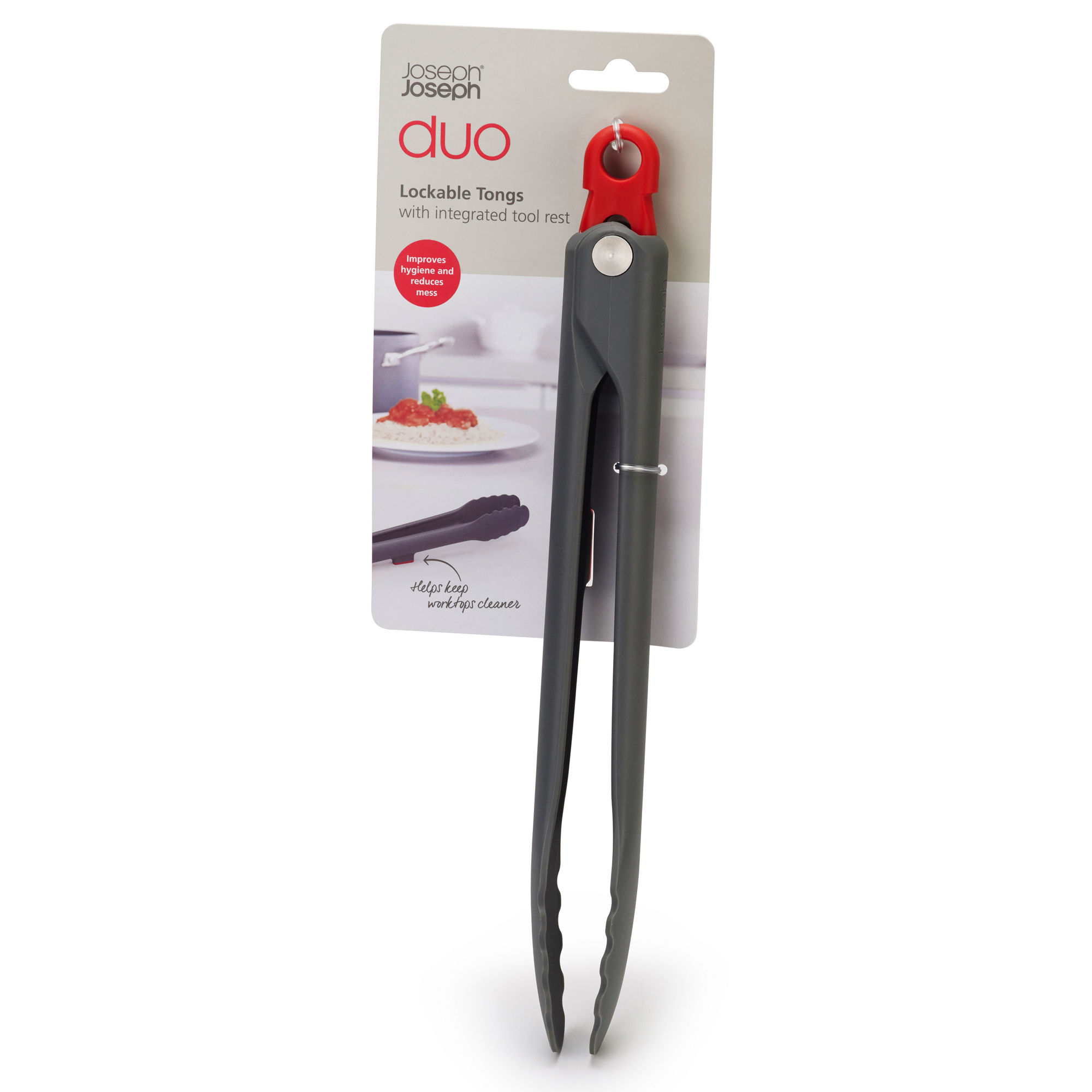 Conçues avec des bras verrouillables pour faciliter le rangement, ces pinces sont équipées d'un porte-outil intégré doté de pieds antidérapants, permettant de maintenir les pinces au-dessus de la surface de travail, améliorant l'hygiène et réduisant les saletés. Fabriquées en nylon, ces pinces peuvent être utilisées avec vos ustensiles de cuisson antiadhésifs sans vous soucier de laisser des rayures.