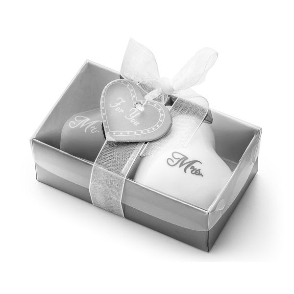 Apportez une touche romantique à une table pour un dîner en tête à tête avec cette salière et cette poivrière en forme de cœurs. Elles représentent l'homme et la femme avec les inscriptions Mr. et Mrs. A offrir en cadeau pour la Saint-Vale* Matière : céramique * Dimension : 5,6 x 4,5 x 3,5 cm Fonctions : salière et poivrière Contenu : Salière et poivrière coeurs Mr. et Mrs.