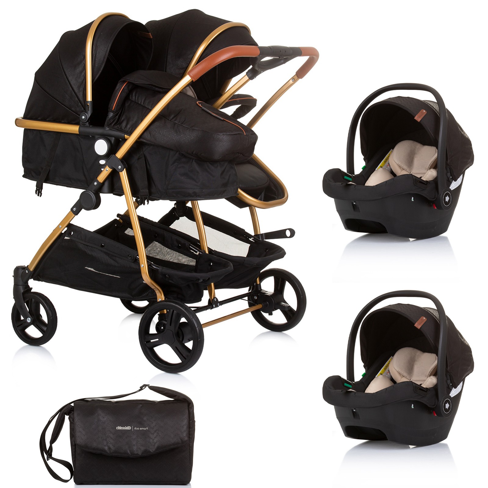 DUO SMART Poussette jumeaux ou enfants rapprochés largeur 79 cm Noir + 2 cosy noir