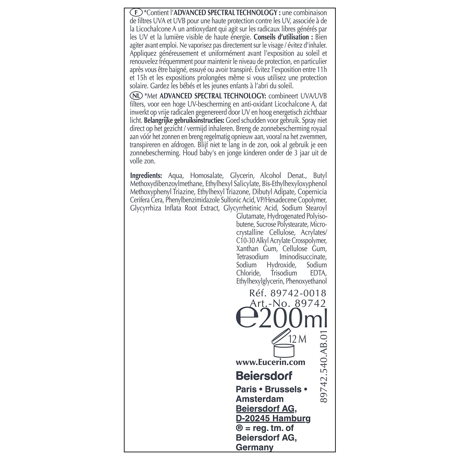 Ingrédients : Huile de douche : glycine soja oil, laureth-4, mipa-laureth sulfate, ricinus communis seed oil, poloxamer 101, parfum, aqua, propylene glycol, panthenol, tocopherol, citric acid, sodium citrate. Spray : aqua, homosalate, glycerin, alcohol denat, butyl methoxydibenzoylmethane, ethylhexyl salicylate, bis-ethylhexyloxyphenol methoxyphenyl triazine, ethylhexyl triazone, dibutyl adipate, copernicia cerifera cera, phenylbenzimidazole sulfonic acid, vp/hexadecene copolymer, glycyrrhiza inflata root extract, glycyrrhetinic acid, sodium stearoyl glutamate, hydrogenated polyisobutene, sucrose polystearate, microcrystalline cellulose, acrylates/c10-30 alkyl acrylate crosspolymer, xanthan gum, cellulose gum, tetrasodium iminodisuccinate, sodium hydroxide, sodium chloride, trisodium edta, ethylhexylglycerin, phenoxyethanol.