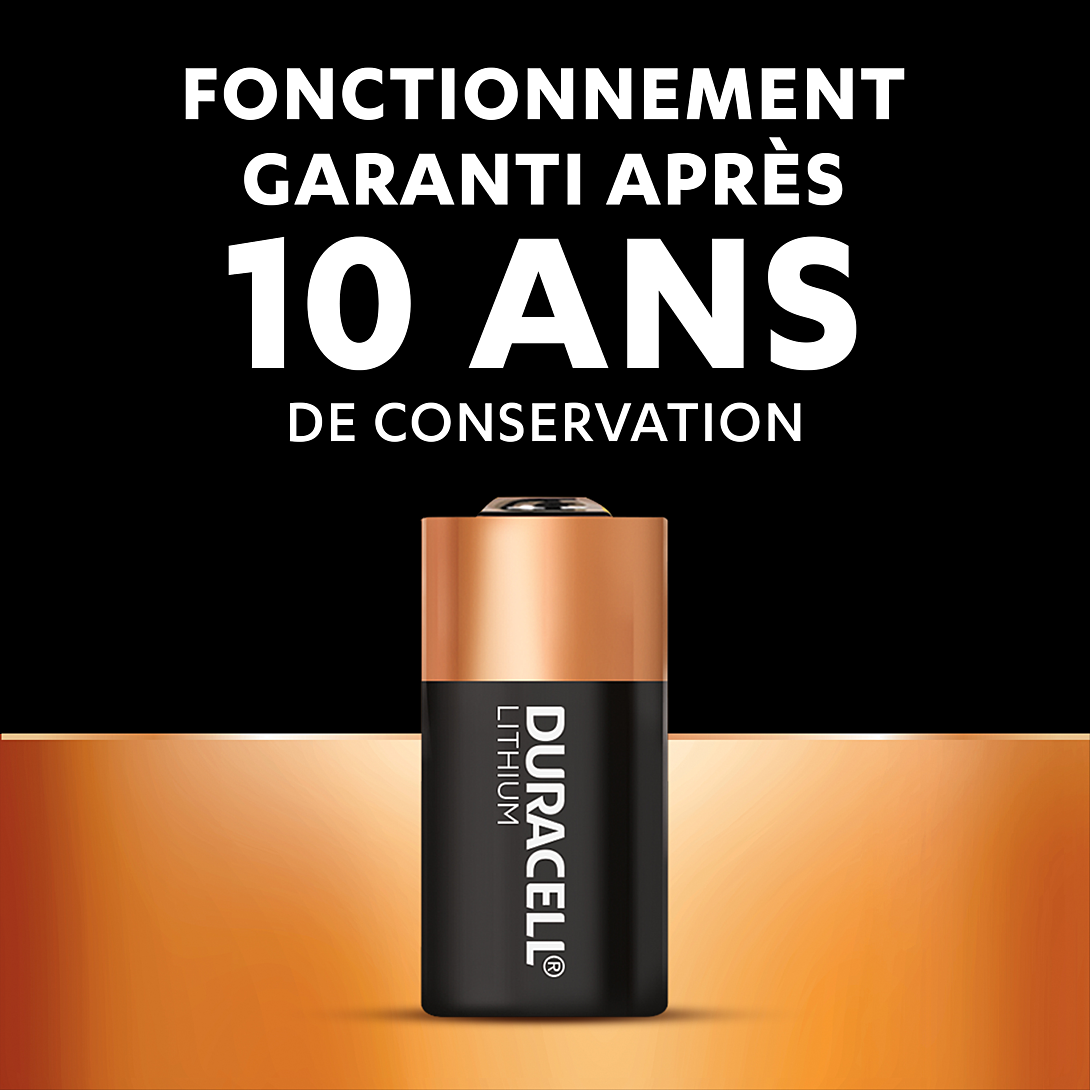 Les piles au lithium haute puissance DURACELL CR123 sont garanties longue durée. Elles conviennent aux appareils photos, lampes de poche, détecteurs de fumée et autres petits appareils électroniques. Avec une conservation de stockage garantie jusqu’à 10 ans, vous avez l’assurance qu’elles seront prêtes quand vous en aurez besoin.
