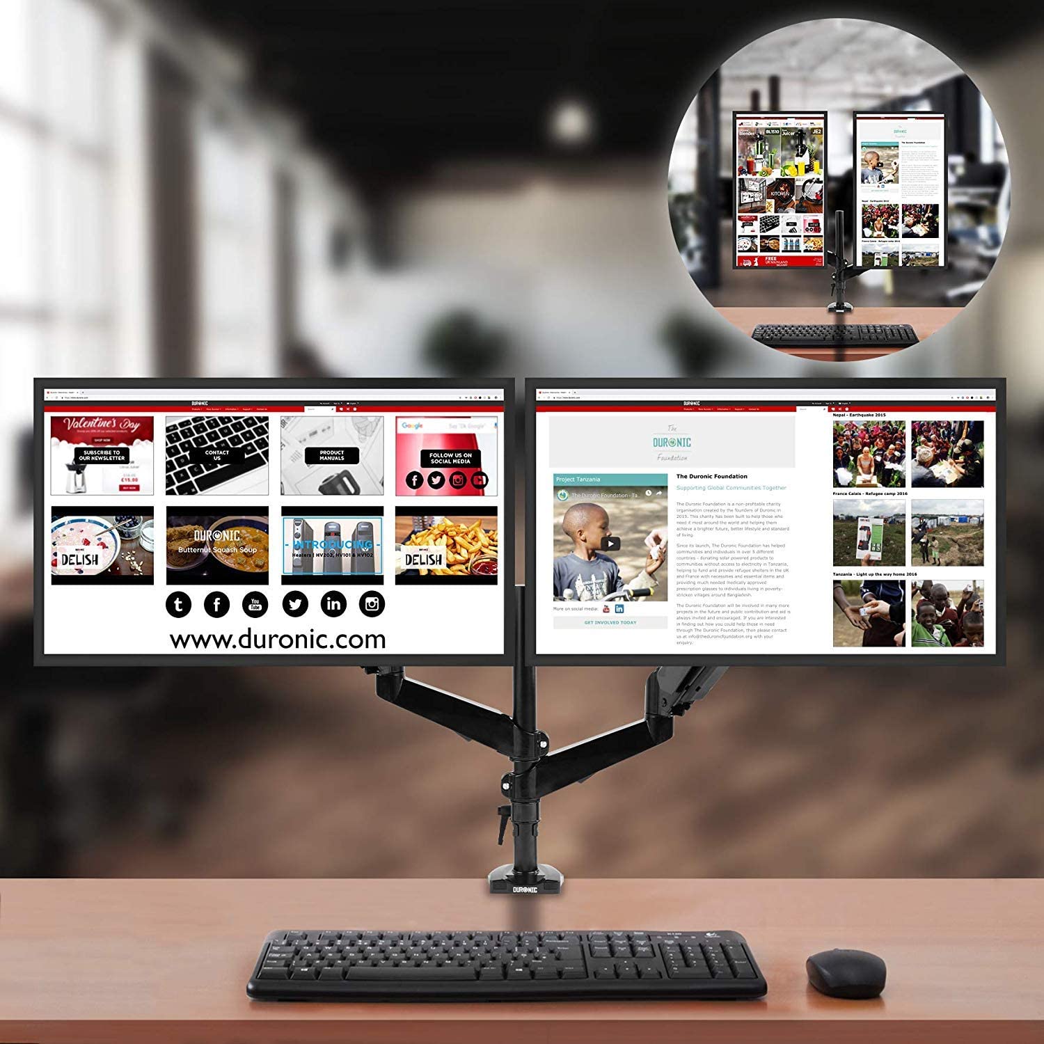 Duronic DMG52 Support Double 2 écrans PC à Pince pour Bureau | Mécanisme à gaz | Ajustement à la volée |
