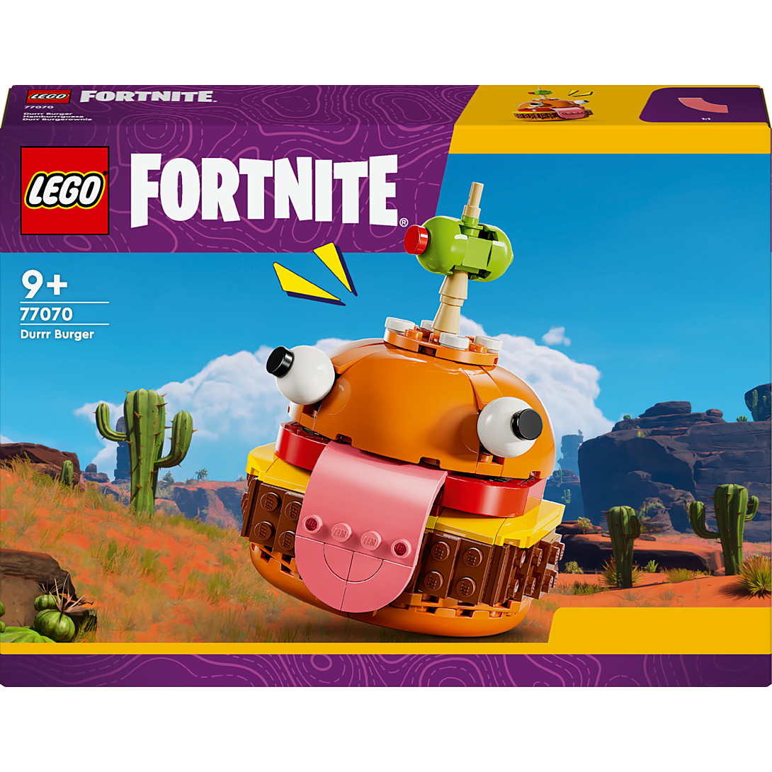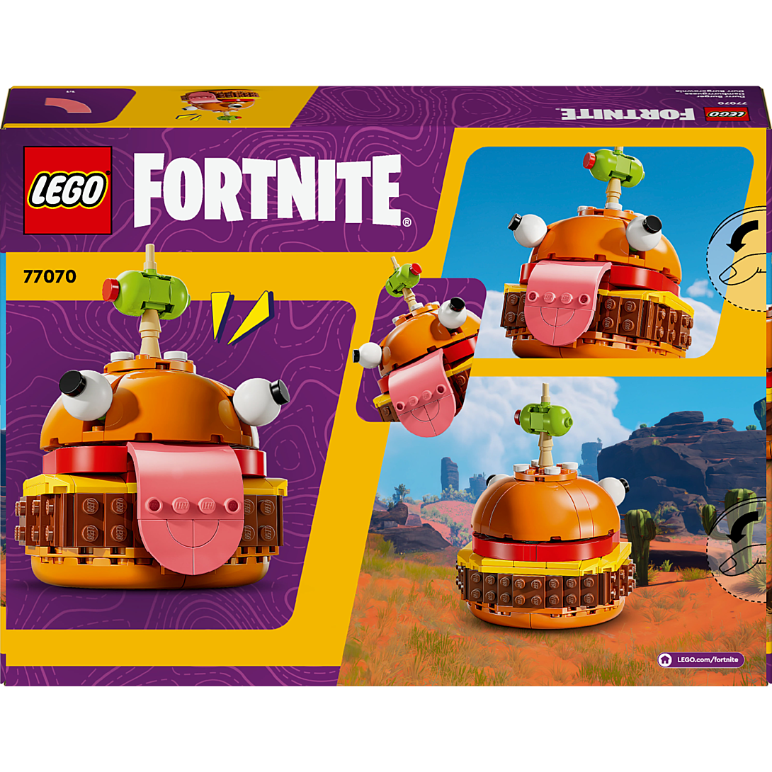 Stimulez la créativité d’un(e) passionné(e) de jeux vidéo dès 9 ans avec le formidable set LEGO® Fortnite® Durrr Burger (77070). Inspiré du jeu vidéo LEGO Fortnite, le set invite les fans à créer une figurine à exposer de Durrr Burger, la mascottedu restaurant de l’univers Fortnite. Les jeunes passionné(e)s du jeu vidéo vont s’amuser à l’infini en construisant le modèle, puis en découvrant des détails passionnants, comme les yeux, la langue et l’olive sur un cure-dent emblématiques du jeu. Une fois terminé, ce modèle basé sur le jeu vidéo est un bel objet que les enfants peuvent exposer fièrement dans leur chambre ou leur salle de jeux. Ce beau cadeau conçu pour les passionné(e)s de jeux vidéo et les fans de Fortnite de tous âges deviendra à coup sûr un élément décoratif LEGO de choix.