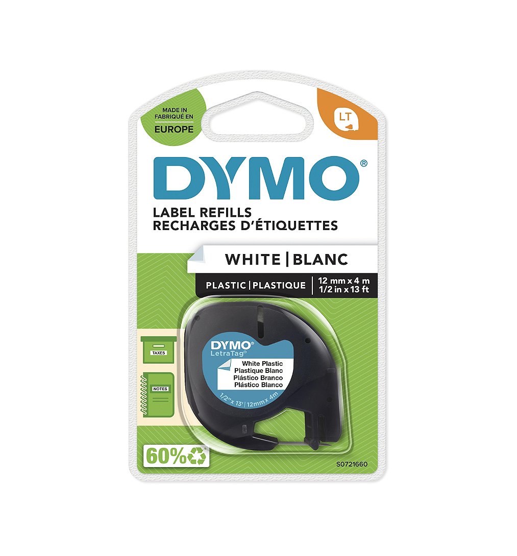 Dymo Letratag Etiquettes plast. blanc 12 mm x 4 m 91221