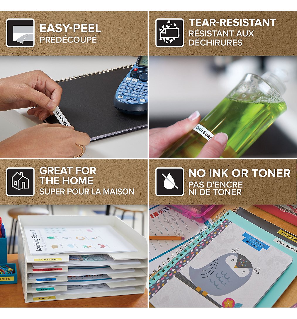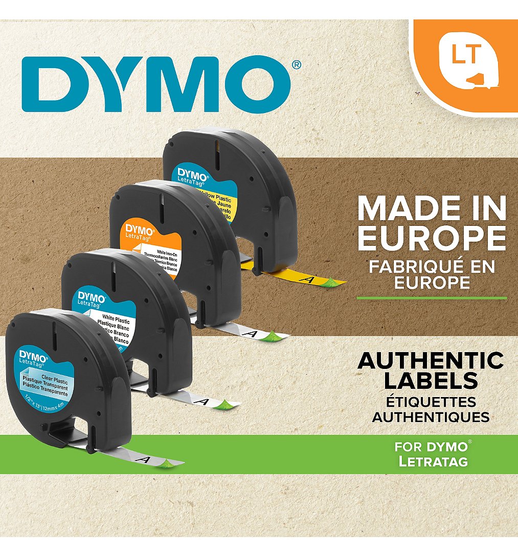 DYMO LetraTag Étiquettes en Plastique Authentique | 12 mm x 4 m | Noir sur Blanc | Étiquettes autocollantes pour étiqueteuse DYMO LetraTag | Lot de 1 Créez des étiquettes en papier bien visibles qui adhèrent facilement aux surfaces courantes telles que le papier ou le verre. L'impression thermique ne requiert ni encre, ni toner. Au besoin, les cassettes se remplacent très rapidement et facilement, pour finaliser vos projets sans difficultés. Ruban pour étiqueteuses DYMO LetraTag et LetraTag QX50. Imprimez des étiquettes aussi larges que possible avec votre étiqueteuse. Ce ruban en polyester est lavable, indéchirable, durable et facile à utiliser. Les étiquettes en plastique LetraTag sont proposées dans divers coloris. Fabriqué en Belgique. Spécialement mise au point pour ses célèbres étiqueteuses LetraTag, cette cartouche DYMO offre un ruban en plastique blanc nacré imprimable de 12 mm sur 4 m. Pour bénéficier de belles étiquettes résistant à l'épreuve du temps, utilisez des accessoires de qualité DYMO authentiques.