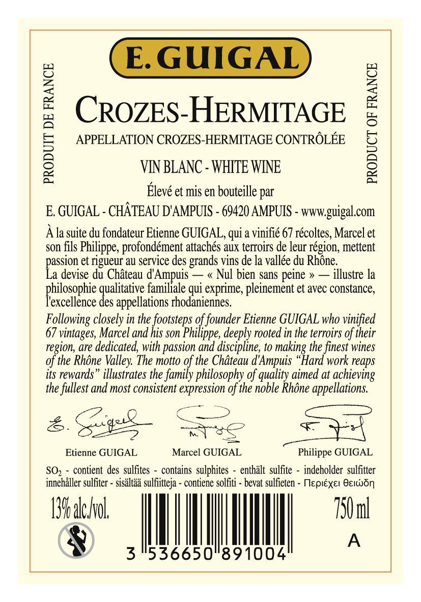 | Libellé | E.Guigal, 2022 - Crozes-Hermitage AOP - Blanc Sec - 75 cl |