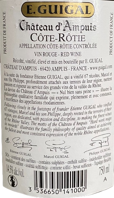 | Libellé | E. Guigal Château d'Ampuis, 2018 - Côte Rôtie AOP - Rouge - 75CL |