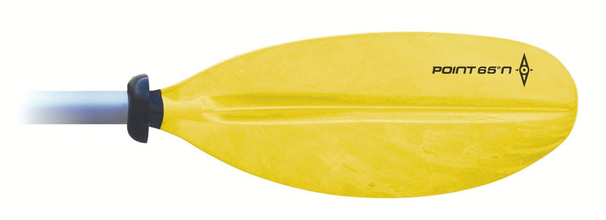 Une pagaie à utiliser avec un faible angle de pagaiement, en matériaux durables avec des lames en nylon et un manche en aluminium.