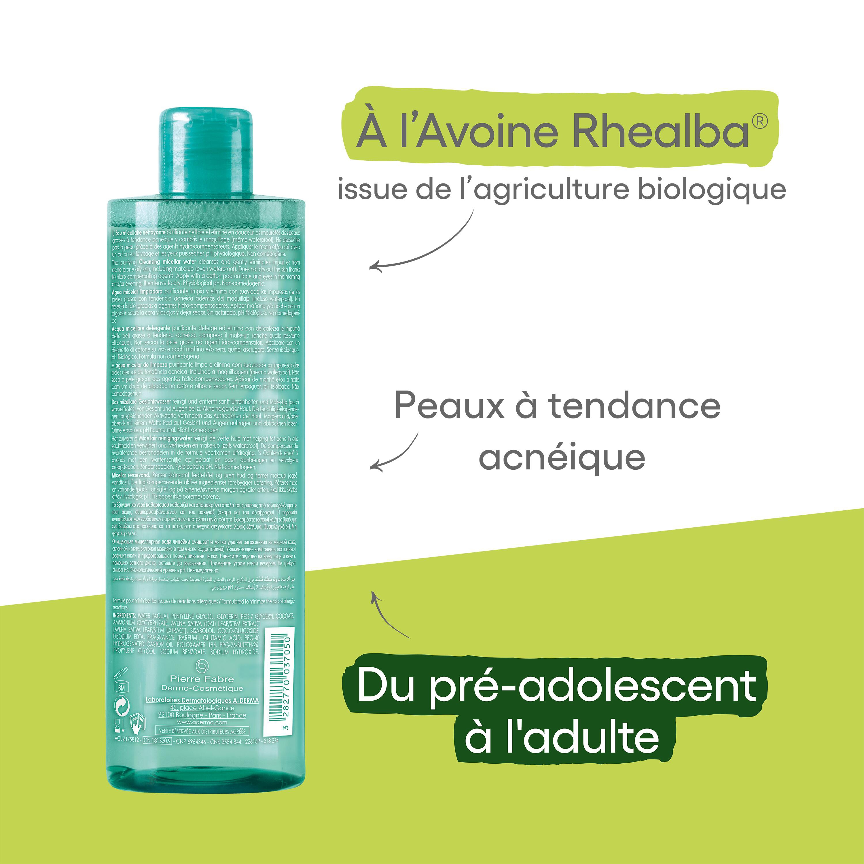 | Libellé | Eau micellaire démaquillante purifiante peaux grasses à tendance acnéique 400ml |