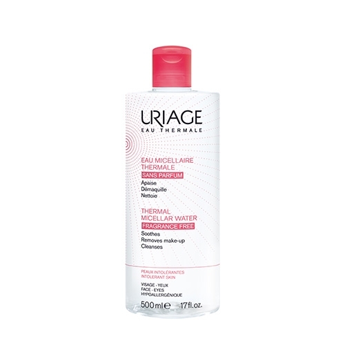 Uriage Eau Micellaire Thermale Peaux Intolérantes 500 ml démaquille, nettoie et apaise le visage et les yeux des peaux intolérantes. Sa formule contient des micelles hautement nettoyantes et de l'Eau Thermale d'Uriage aux propriétés apaisantes et anti-irritantes. Les tensioactifs non ioniques doux, constituants des micelles, agissent comme des aimants et captent le maquillage et les impuretés. Sa formule contient aussi de la glycérine aux vertus hydratantes.
