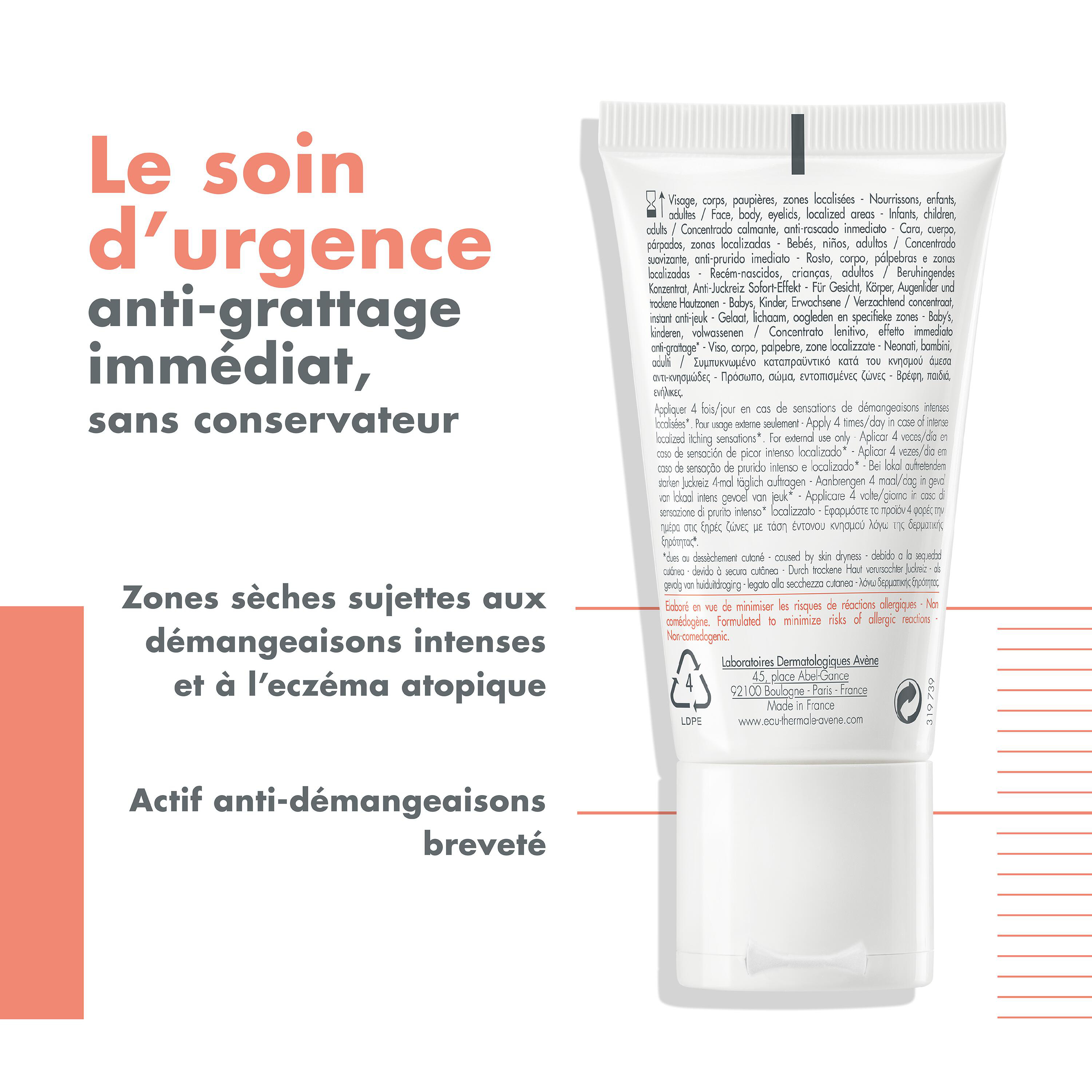 Grâce à I-modulia®, 1er actif postbiotique biotechnologique issu de l'Eau thermale d'Avène, qui diminue les démangeaisons, stimule les défenses de la peau et lutte contre les irritations, combiné à un complexe protecteur et réparateur (Cer-omega et de l'huile d'origine végétale ultra-concentrée) et l'Eau thermale d'Avène apaisante, anti-irritante et adoucissante, ce soin SOS pour peaux sèches apaise immédiatement les démangeaisons intenses localisées et les irritations*, tout en réduisant les pics de sécheresse sévère. Cette formule à l'efficacité reconnue ne contient que des ingrédients utiles pour la peau. La Cosmétique Stérile®, une technologie unique permettant de maintenir stérile le produit tout au long de son utilisation et un packaging protecteur exclusif parfaitement hermétique garantit une sécurité et un respect optimal de la peau et du microbiome cutané. Formule non comédogène, sans parfum et élaborée en vue de minimiser les risques de réactions allergiques. *Liées au dessèchement cutané. Son Green Impact Index est B, on vous explique pourquoi. Le Green Impact index mesure l'impact environnemental et sociétal de nos produits à partir d'une note globale intégrant 20 critères. Le Green Impact Index ne mesure pas l’efficacité du produit, ni ses effets sur la santé de chacun, mais son respect de la nature et de la société dans son ensemble (éco-socio-conception). Chez Pierre Fabre, on estime qu’un produit commence à être éco-socio-conçu à partir d'une note B, même si l’objectif est à terme d’atteindre A. L’impact environnemental et sociétal de ce produit est : Emballage ne contenant pas de matière recyclée Packaging contenant des matériaux majoritairement recyclables Formule d’origine naturelle 97%***** *****Hors gaz Fabriqué dans une usine certifiée pour l’environnement*** ***Selon la norme ISO 14001 ou ECOVADIS