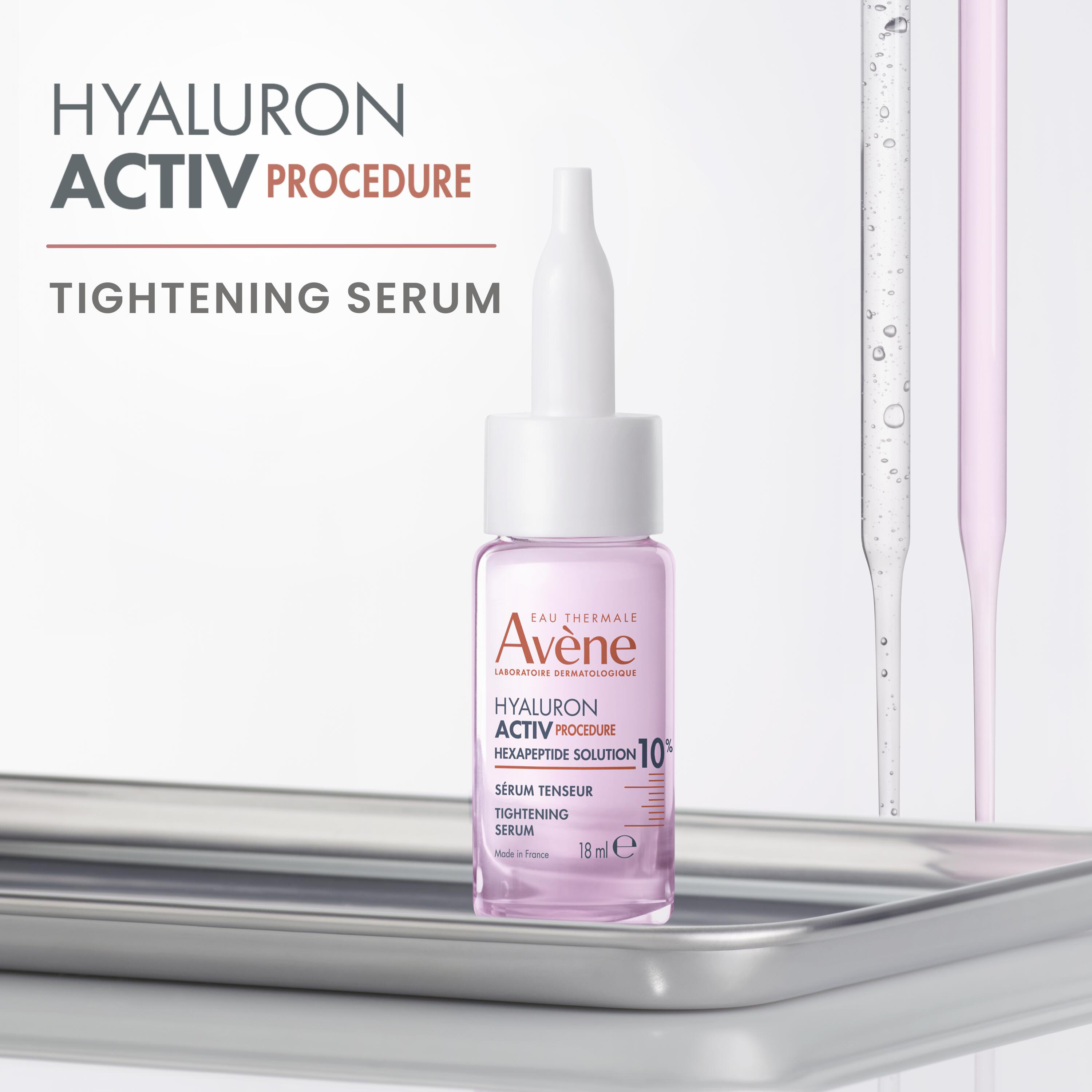 Le Laboratoire Dermatologique Avène innove avec HYALURON ACTIV PROCEDURE : une gamme développée avec des dermatologues esthétiques qui transpose les dernières avancées en matière de Dermatologie Esthétique à de la Dermo-Cosmétique. 27 études, 880 sujets testés. Le Sérum Tenseur est une innovation formulée avec le cocktail d'actifs anti-âge le plus concentré à l'efficacité cliniquement prouvée*¹. Il corrige 5 signes de l'âge en 14 jours : rides [de contraction, du front, de la patte d'oie, sillons nasogéniens], volume, fermeté, éclat, teint*². En 14 jours, LA PEAU PARAÎT 2 ANS PLUS JEUNE*³. Efficacité cliniquement prouvée. Ses actions lissante, anti-rides et effet lifting reposent sur un trio d’actifs reconnus en médecine esthétique, proposés sous une forme pure et concentrée : • [SOLUTION D’HEXAPEPTIDE 10%] : inspirée du mécanisme d'action des injections botuliques, elle contient un puissant peptide anti-âge qui réduit l'apparence des rides. • [NIACINAMIDE 6%] : stimule les cellules et prolonge leur longévité*⁴ pour lutter contre les signes de l’âge. • [ACIDE HYALURONIQUE 1%] : hydrate, lisse et repulpe la peau. Produit à reconstituer, ce sérum est inspiré de la pratique des dermatologues esthétiques : un actif est libéré à la dernière minute pour garantir sa forme la plus puissante pour un produit à l’efficacité optimale en un temps record*⁵. Sa texture légèrement gélifiée est non collante et pénètre facilement dans la peau. 94% d’ingrédients d'origine naturelle. VEGAN. *¹Chez le Laboratoire Dermatologique Avène. *²Test en vie réelle, 72 consommateurs pendant 14 jours. *³Evaluation après 2 semaines d'application biquotidienne sur la base de l'évaluation clinique à l'aide d'une base de données, sur 40 sujets. *⁴Test in vitro. *⁵Etude clinique sur 40 sujets, 2 applications par jour pendant 14 jours.