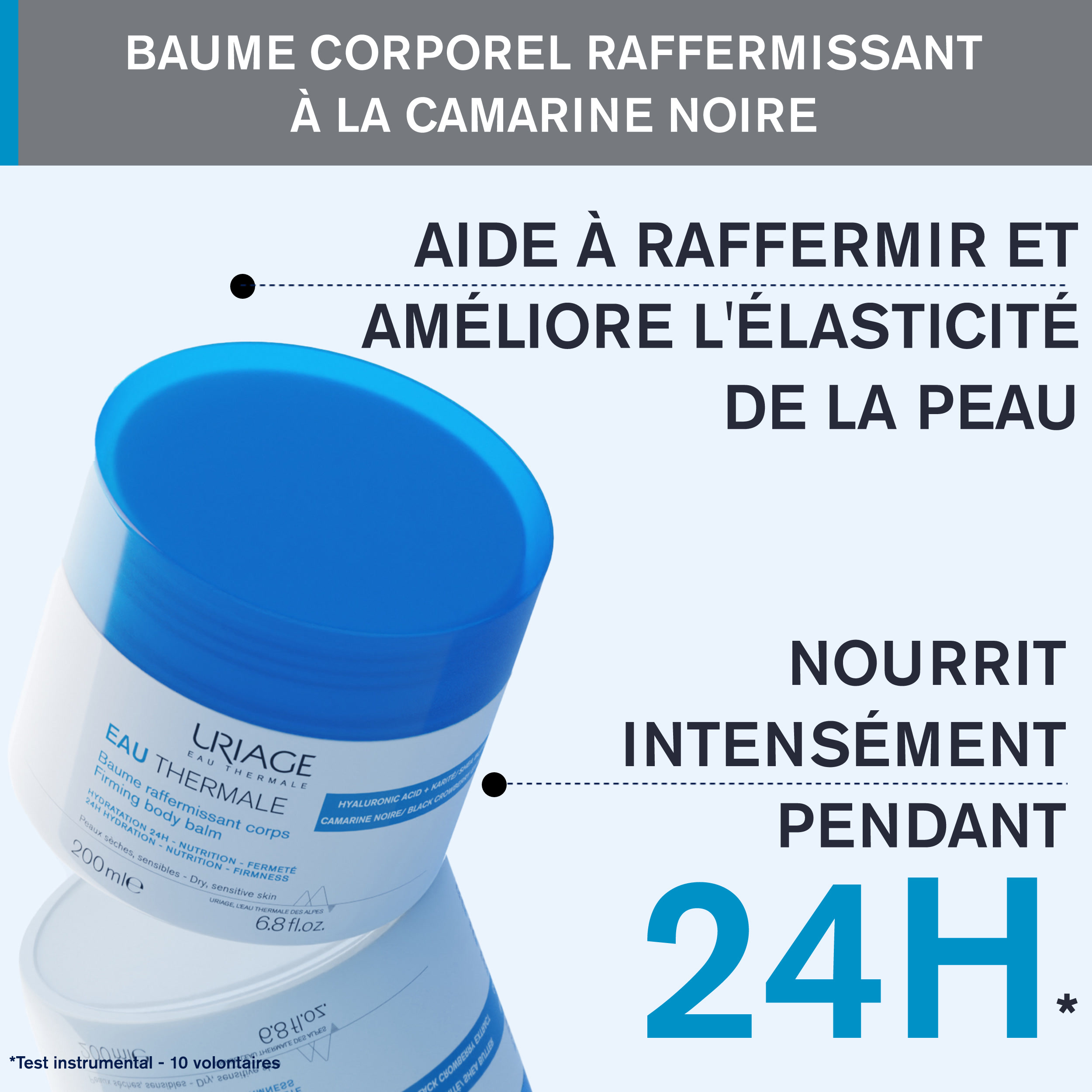 Uriage Baume Fondant Corps 200 ml à la texture fondante et onctueuse nourrit intensément, apaise et protège la peau en l'enveloppant dans un véritable cocon de douceur et de bien-être. Sa formule associe l'eau thermale d'Uriage reconnue pour ses propriétés apaisantes et anti-irritantes à l'acide hyaluronique, au beurre de karité, à la camarine noire, pour ainsi améliorer la fermeté et l'élasticité de la peau. La peau sèche et sensible devient plus lisse, plus souple, elle est enrobée de douceur et de confort et d'une senteur sensuelle et envoûtante.