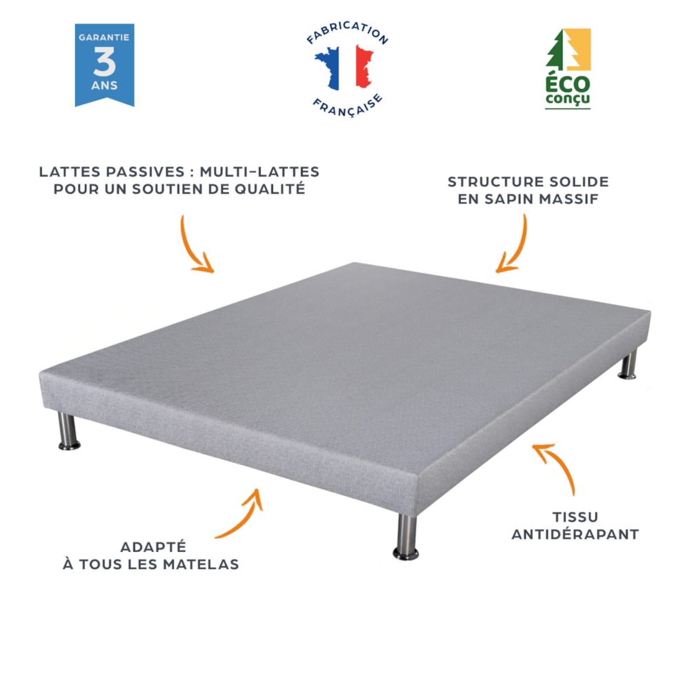 INFO SOMMIER TAPISSIER SR9 GRIS FINAUD + PIEDS DE LIT