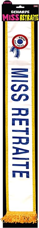 Pour s'amuser, et fêter dignement son départ à la retraite. Une écharpe satiné avec design pailleté et bordure dorée. Vous n'avez plus qu'à faire la fête, et vous amusez ! On adore ça Dimensions : 30 x 15 x 1,2 cm Informations : Blanc satiné avec design pailleté Bordure, et frange dorée Taille unique Polyester
