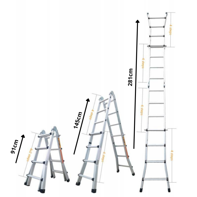 | Libellé | Échelle articulée pliante et télescopique en aluminium 4x3 marches 2,81m + 1 tablette |