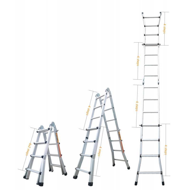 Échelle articulée pliante et télescopique en aluminium 4x3 marches 2,81m + 1 tablette