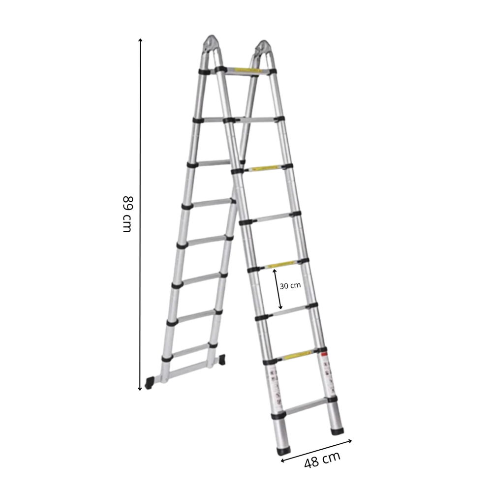Echelle/escabeau télescopique double aluminium 2x8 marches H5m (2,5+2,5)