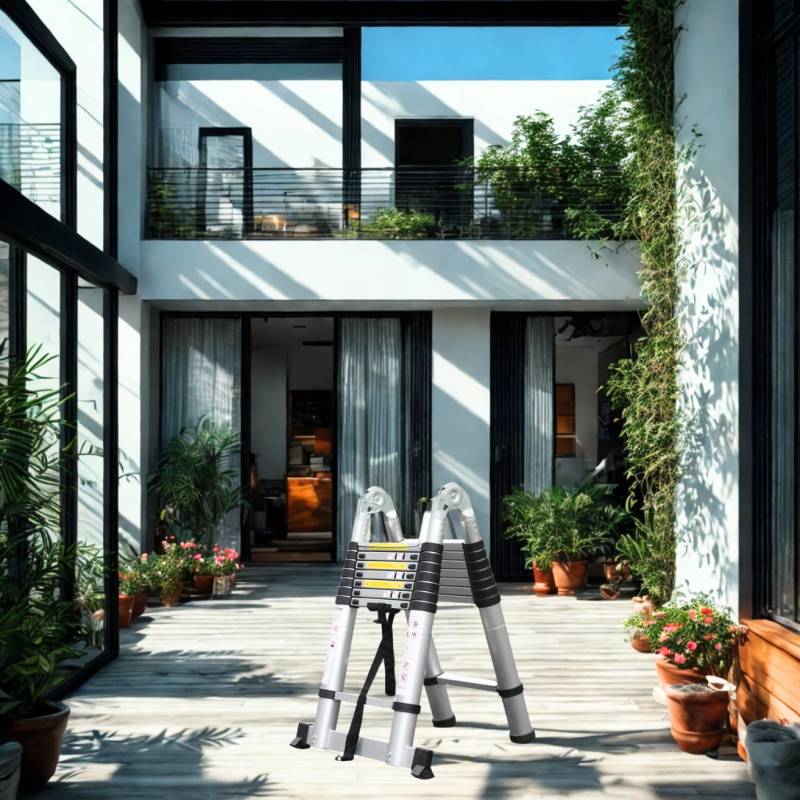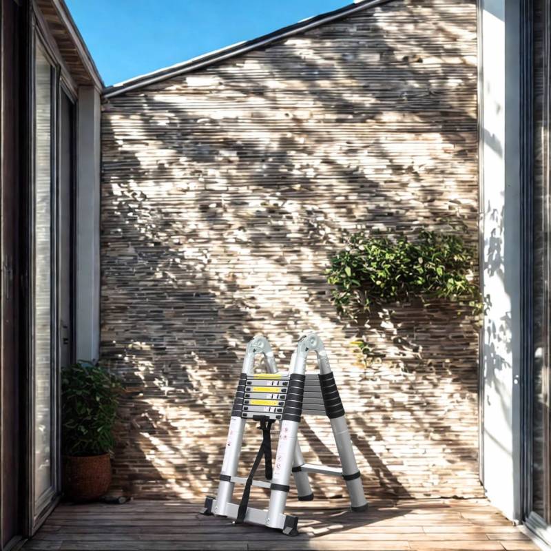 Échelle télescopique 5m(2,5+2,5). Pratique et solide, cette échelle télescopique en aluminium est un outil indispensable pour la réalisation de vos travaux quotidiens. Légère, vous pourrez la transporter facilement et atteindre la hauteur souhaitée grâce à son déploiement aisé et sans effort.
