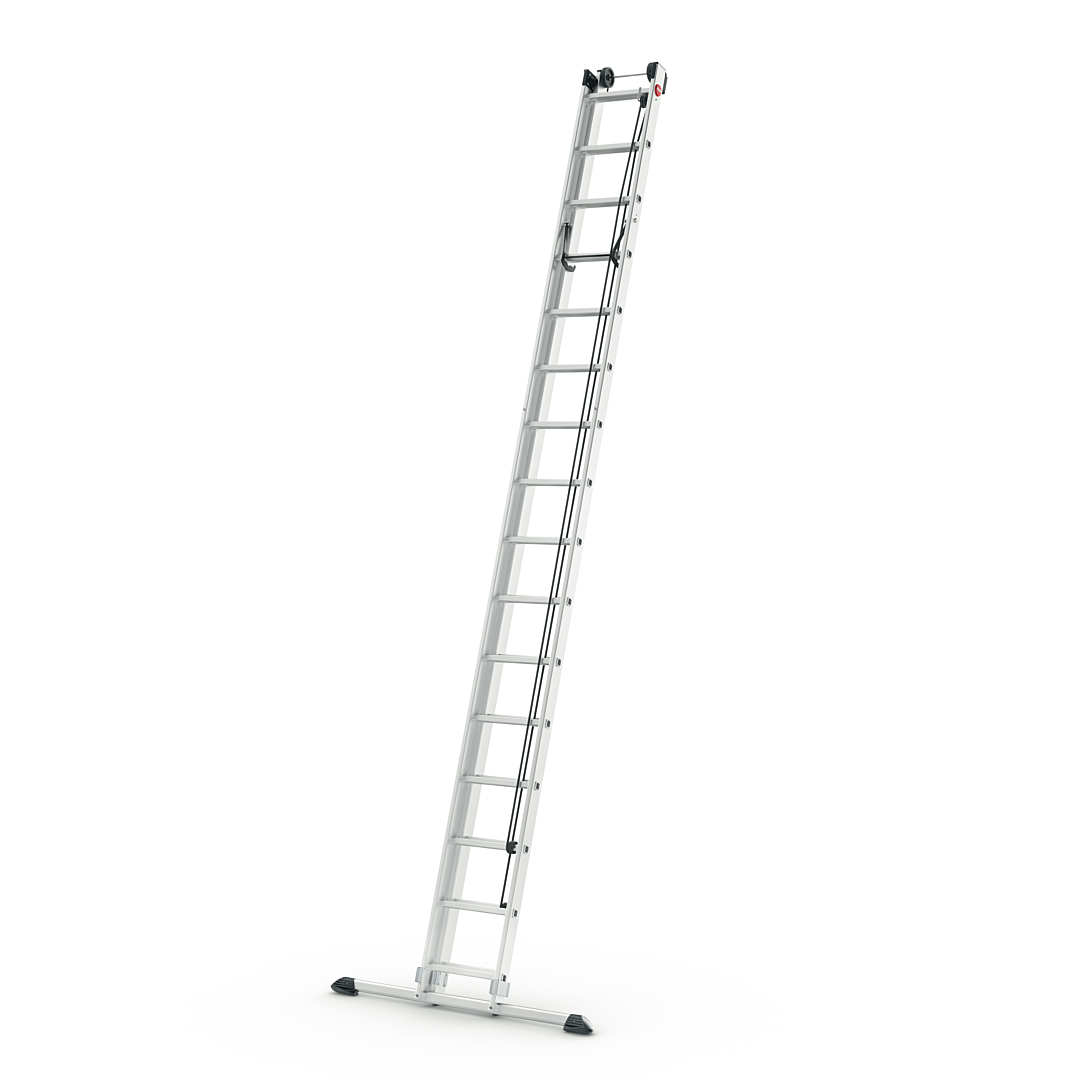 Echelle HAILO coulissante à corde 2x16 échelons - Roulettes d'appuies au mur - Echelons sertis - Base rapportée - Garantie 10 ans - Charge max 150kg - Norme EN131