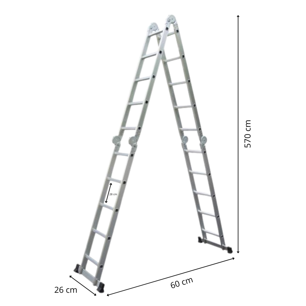 | Libellé | Échelle Multifonction Pliable 4x5 marches 6 en 1 - 5.7m - 100% aluminium - Avec plateforme échafaudage |
