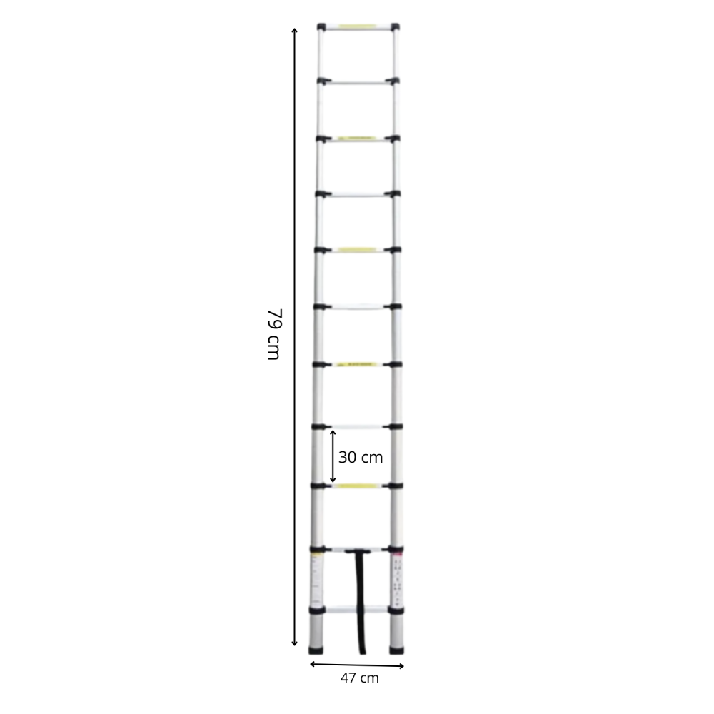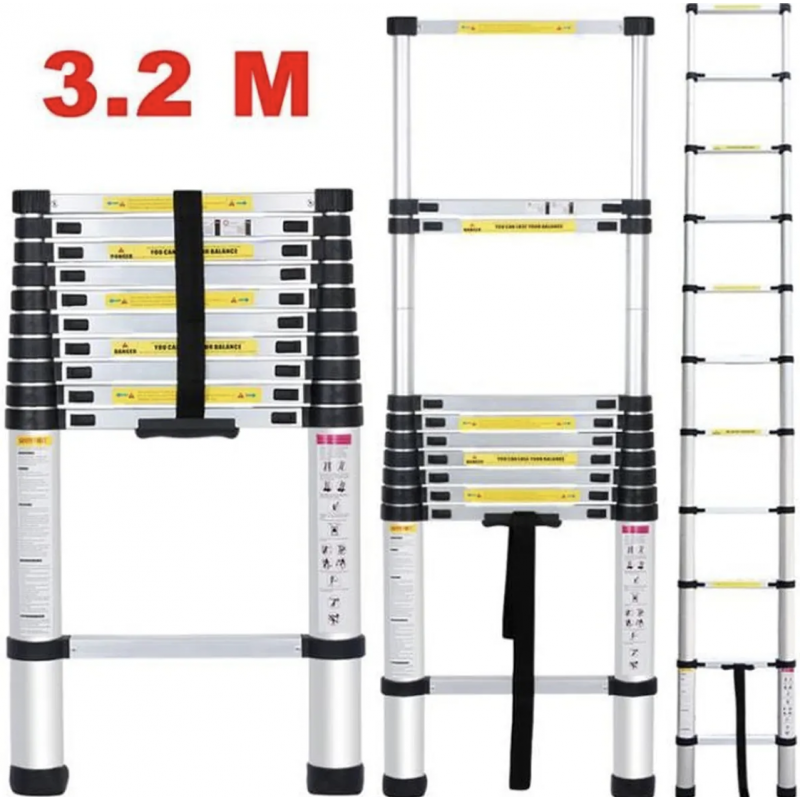 Échelle télescopique 3,2m. Pratique et solide, cette échelle télescopique en aluminium est un outil indispensable pour la réalisation de vos travaux quotidiens. Légère, vous pourrez la transporter facilement et atteindre la hauteur souhaitée grâce à son déploiement aisé et sans effort.