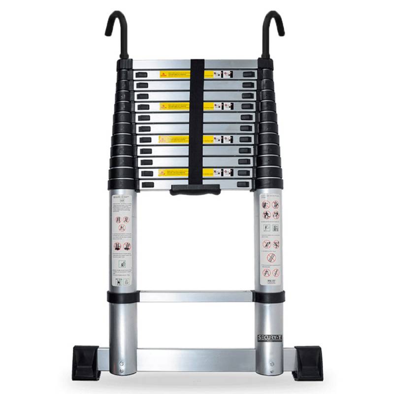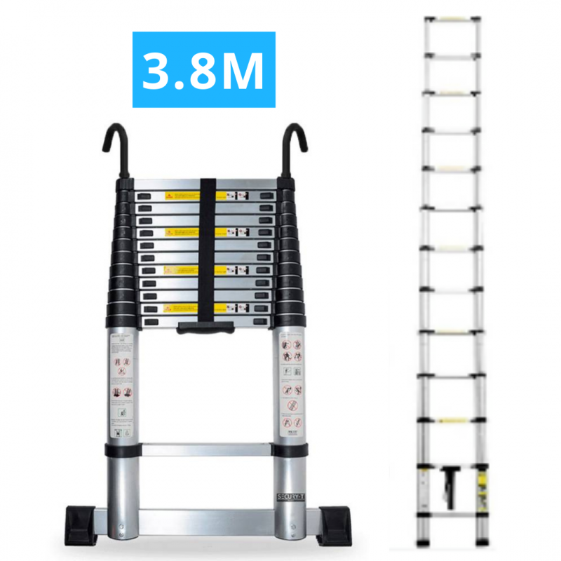 Échelle télescopique 3,8m. Pratique et solide, cette échelle télescopique en aluminium est un outil indispensable pour la réalisation de vos travaux quotidiens. Légère, vous pourrez la transporter facilement et atteindre la hauteur souhaitée grâce à son déploiement aisé et sans effort.