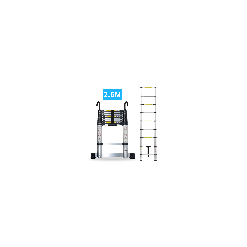 • PRATIQUE - À sa longueur totale de 2.6m, cette échelle télescopique se rétracte pour un rangement facile