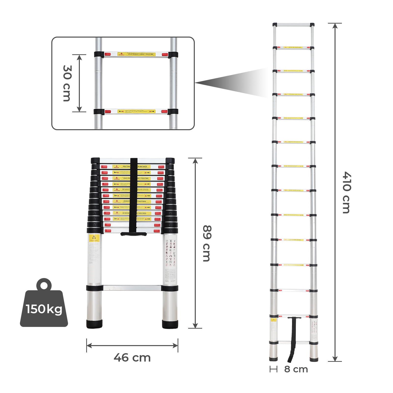 | Libellé | Echelle Telescopique, échelle Pliable, 4,1 mètre(s), Sac de transport OFFERT, EN 131, Charge maximale: 150 kg |