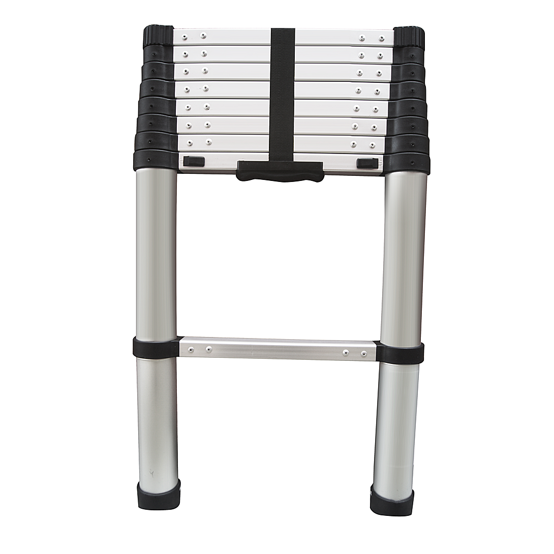 Echelle télescopique en aluminium 9 échelons - Hauteur : 2,60m - Hauteur de travail : 3,60m. Encombrement minimum. Hauteur de l'échelle repliée : 79cm