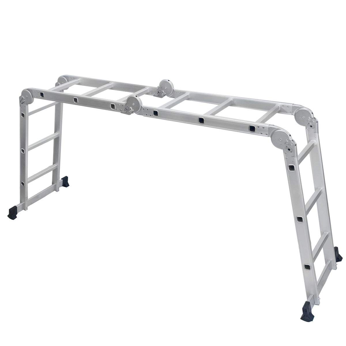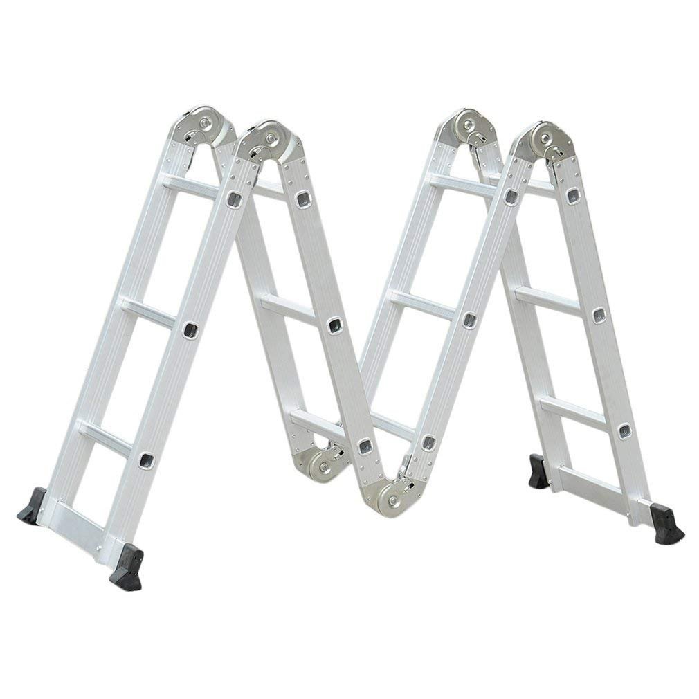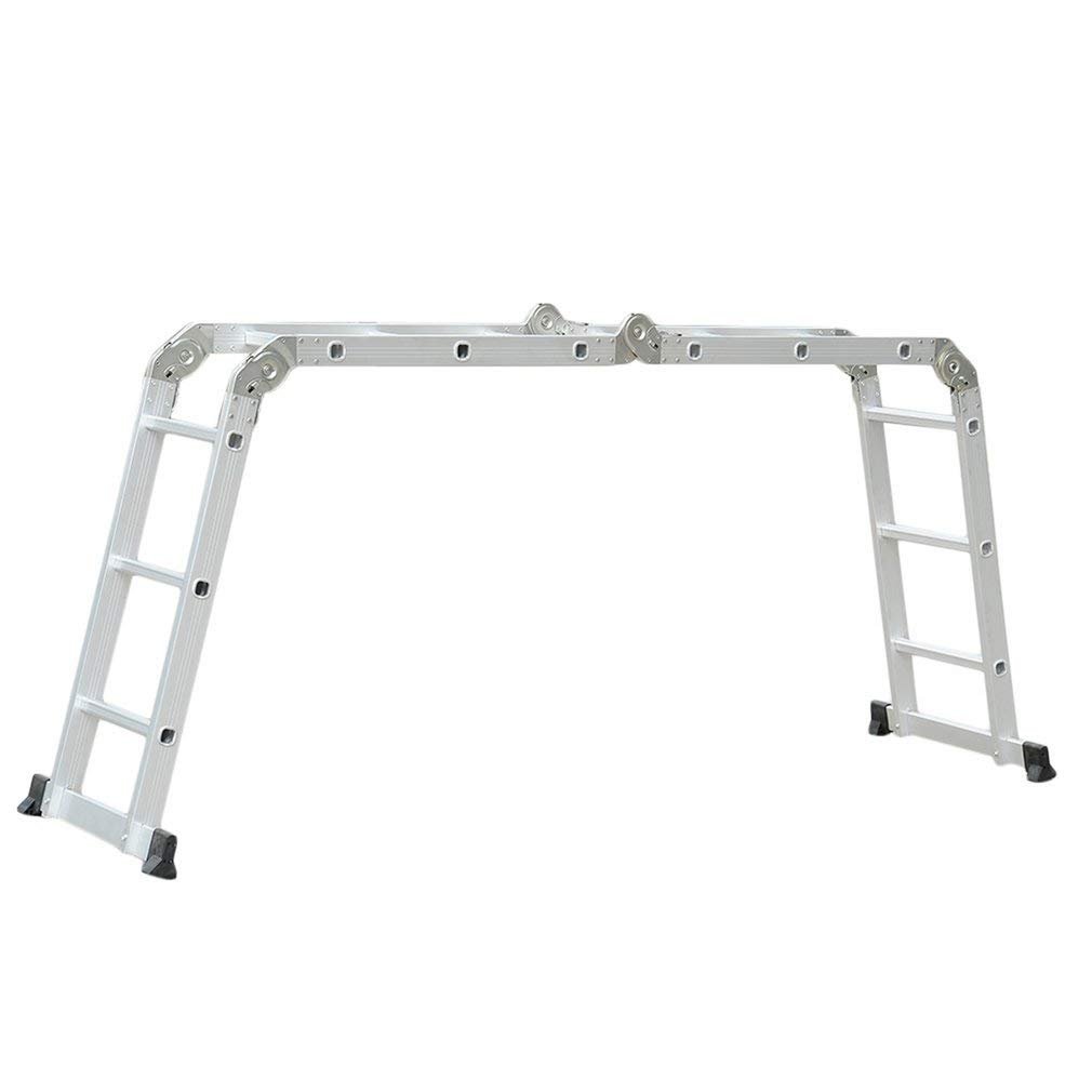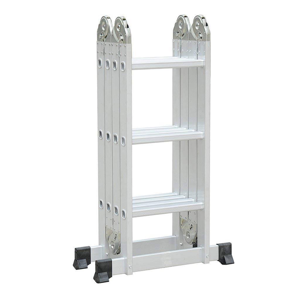 Echelle Télescopique Multifonction en Aluminium 3,7m Bonne qualité : Fabriqué en Aluminium 6063 de haute qualité, les montants et les marches rendent l'échelle solide et résistante. Charge maximale : 150 kg, hauteur: 356 cm, conforme aux normes européennes EN131. Multifonctions : Echelle 3 en 1: échafaudage, escabeau ou échelle droite, 3 fonctions en 1. Selon les différents besoins de travail, vous pouvez régler le produits en 6 formes differentes. Pliage facile : 4 composants liés par 6 dispositifs de verrouillage, qui assurent la stabilité de l'échelle et permettent au produit de changer de forme en toute sécurité. Dimension après le pliage: 100 x 82 x 25,5, peu encombrant, gain de place. Design anti-dérapant : Embouts des pieds en dents de scie, anti-glissants; la surface des marches est côtelée pour éviter les glissements et assurer un meilleur maintien. Dimensions du produit plié : 100 x 25,5 x 82 cm (L x l x h). Caractéristiques techniques : Nombre de marches : 16 Dimension du produit plié : 100 x 25,5 x 82 cm (L x l x h) Dimension du produit deplié : 100 x 6 x 356 cm (L x l x h) Hauteur comme escabeau : 175 cm Distance entre 2 montants de l'échelle : 31.5cm Dimension du montant : 6 x 2,5 cm Dimension de la marche : 3 x 3 cm Hauteur par marche : 25 cm Poids net : 16.8 kg
