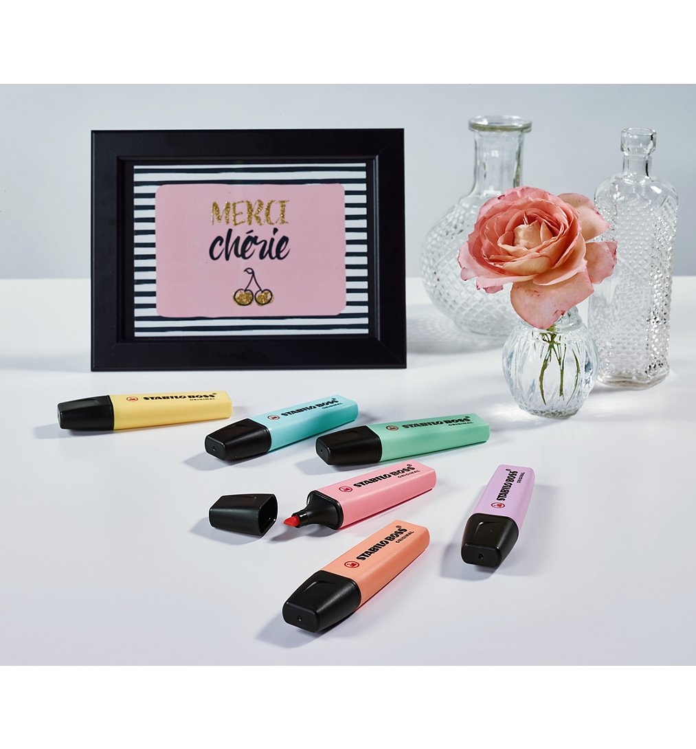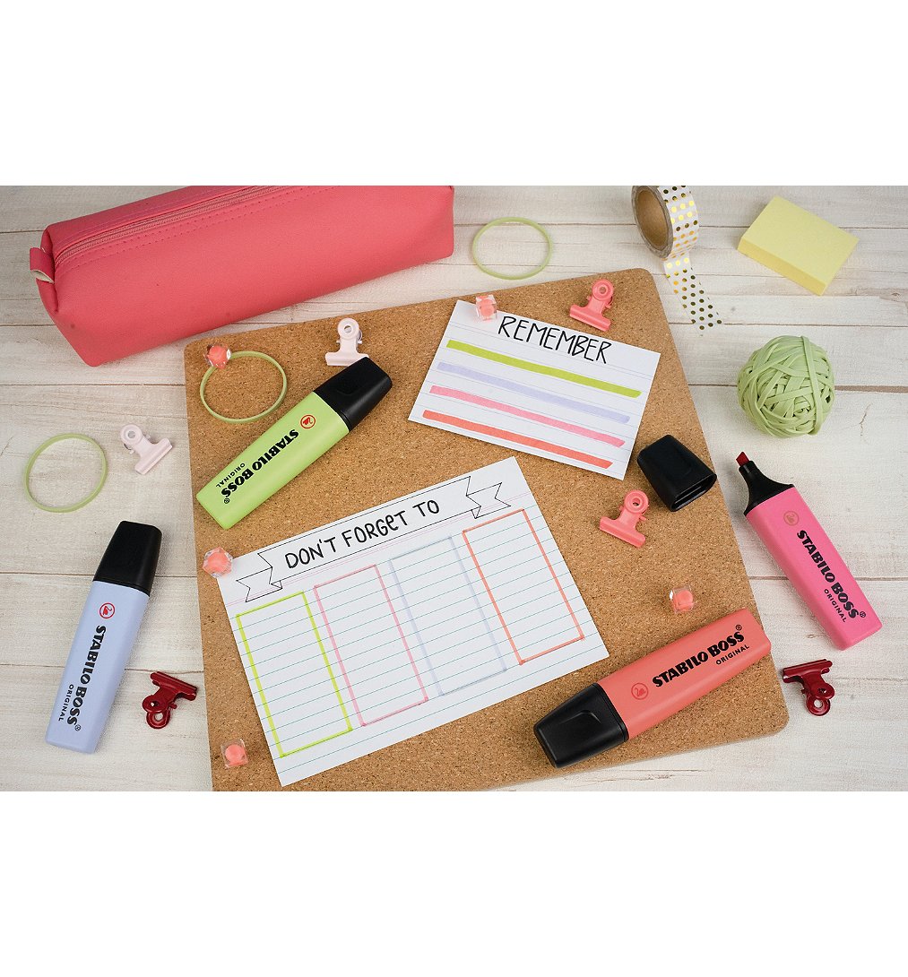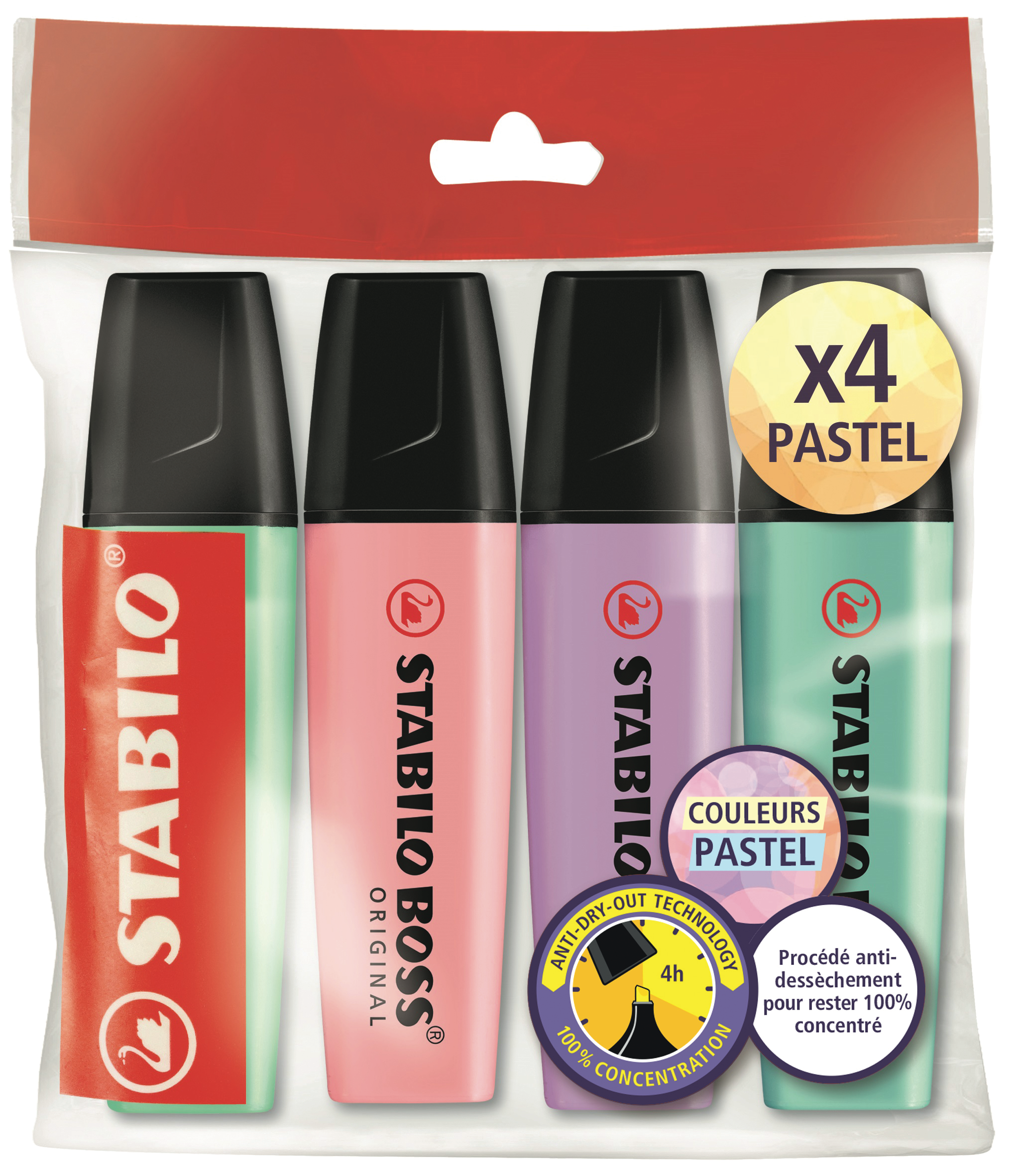 STABILO BOSS ORIGINAL Pastel, le surligneur de référence à l'école comme à la maison désormais en couleurs pastel.