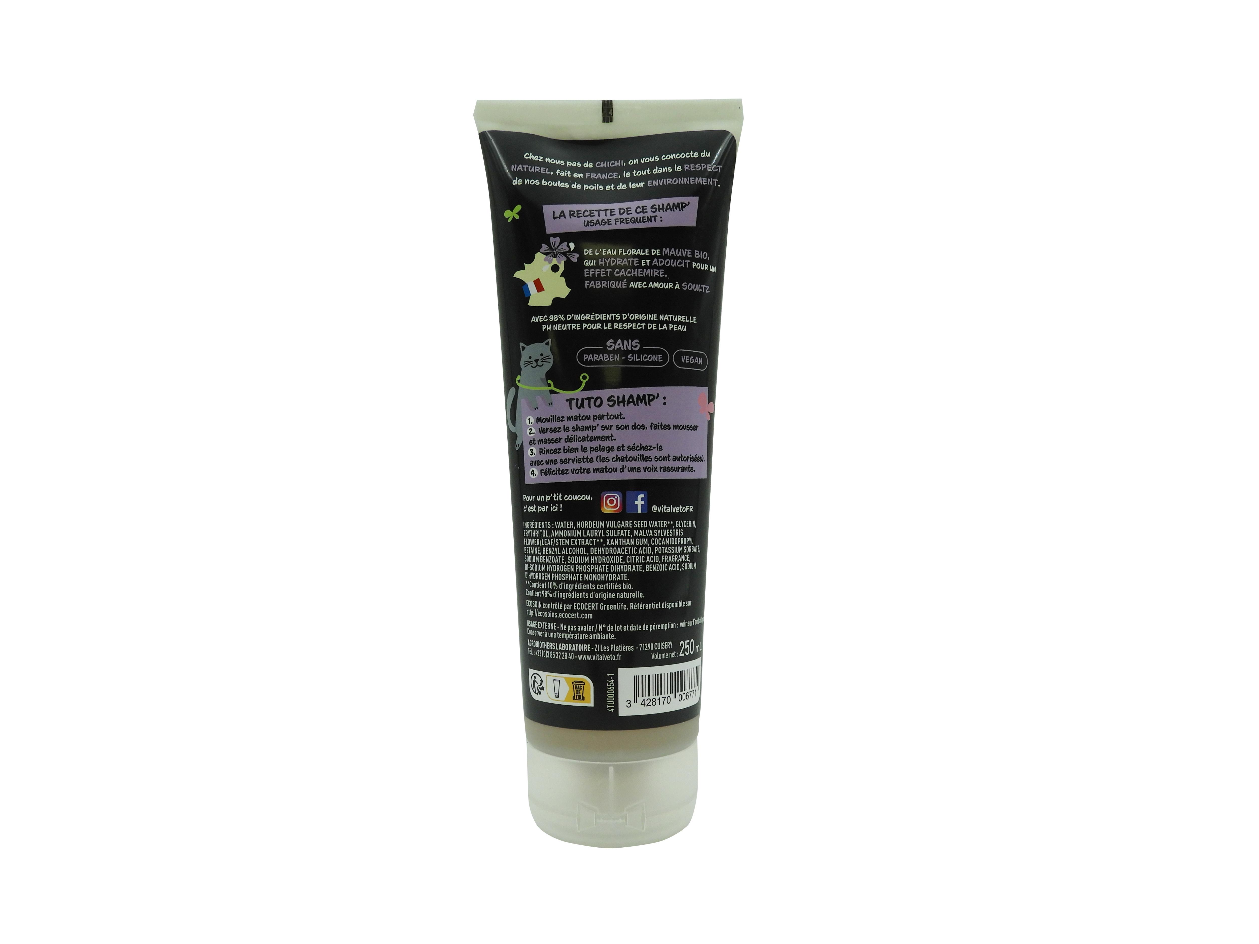 Shamp chat Eau florale de mauve bio 98% Origine naturelle Sans Paraben - Silicone Vegan