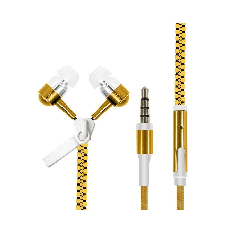 Écouteur intra-auriculaire Glowing Zipper Sport Music écouteurs filaires pour téléphones Jack 3,5 mm Jaun