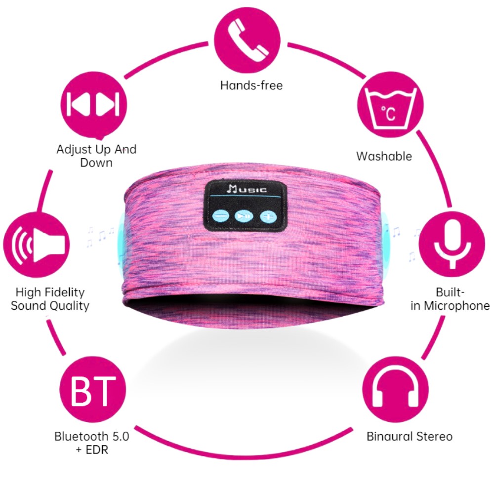 Bandeau Bluetooth sans fil pour musique, écouteurs de sommeil, écouteurs de sommeil, haut-parleur stéréo HD pour dormir, entraînement, jogging, yoga - Rose