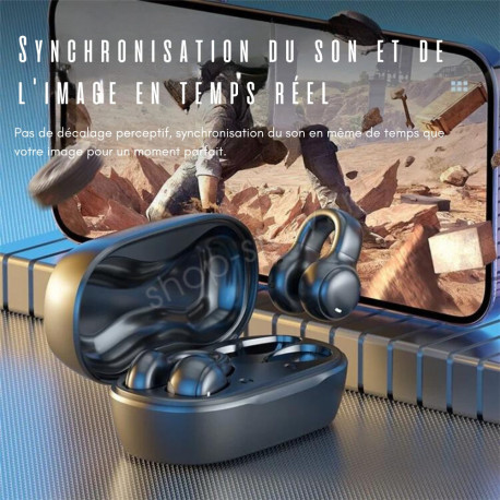 | Libellé | Écouteurs Bluetooth Sans Fil en Clip d'Oreille avec Etui de Chargement et Affichage Numérique |