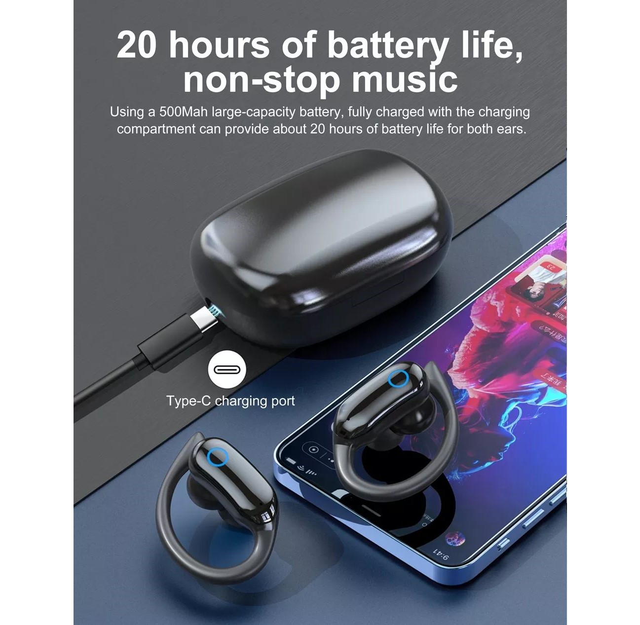 Les écouteurs de sport dotés de contours d'oreille souples sont confortables à porter, vous garantissant de ne pas les perdre lors d'activités de haute intensité. Avec une longue durée de vie de la batterie et un affichage numérique pour l'état de la batterie. Le boîtier de charge offre un rangement pratique et une capacité de batterie supplémentaire. Bluetooth 5.3 assure une transmission de signal stable et de haute qualité.