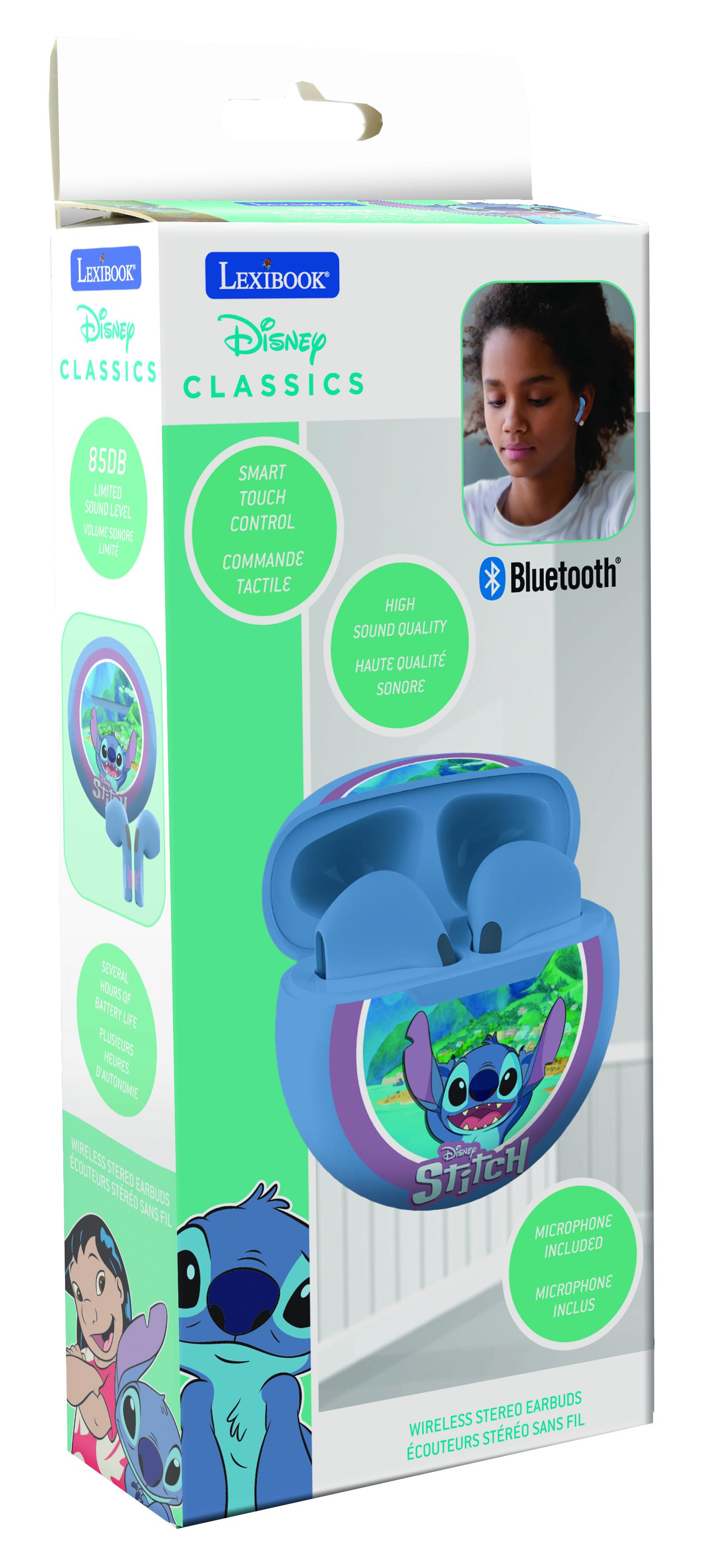 "*Écouteurs sans fil Bluetooth 5.1 avec étui de chargement. Un design 100% Stitch Volume limité à 85dB pour protéger les oreilles ! Avec mode de contrôle tactile : peut répondre aux appels grâce au microphone et aux boutons de contrôle (lecture/pause/suivant/précédent) Très légers et dotés d'un étui de chargement, ils se glissent facilement dans un sac. 3-4 heures d'écoute ininterrompue Compatible avec tous les smartphones, tablettes et autres lecteurs multimédia Bluetooth. Batterie rechargeable longue durée via port USB-C (câble inclus)."