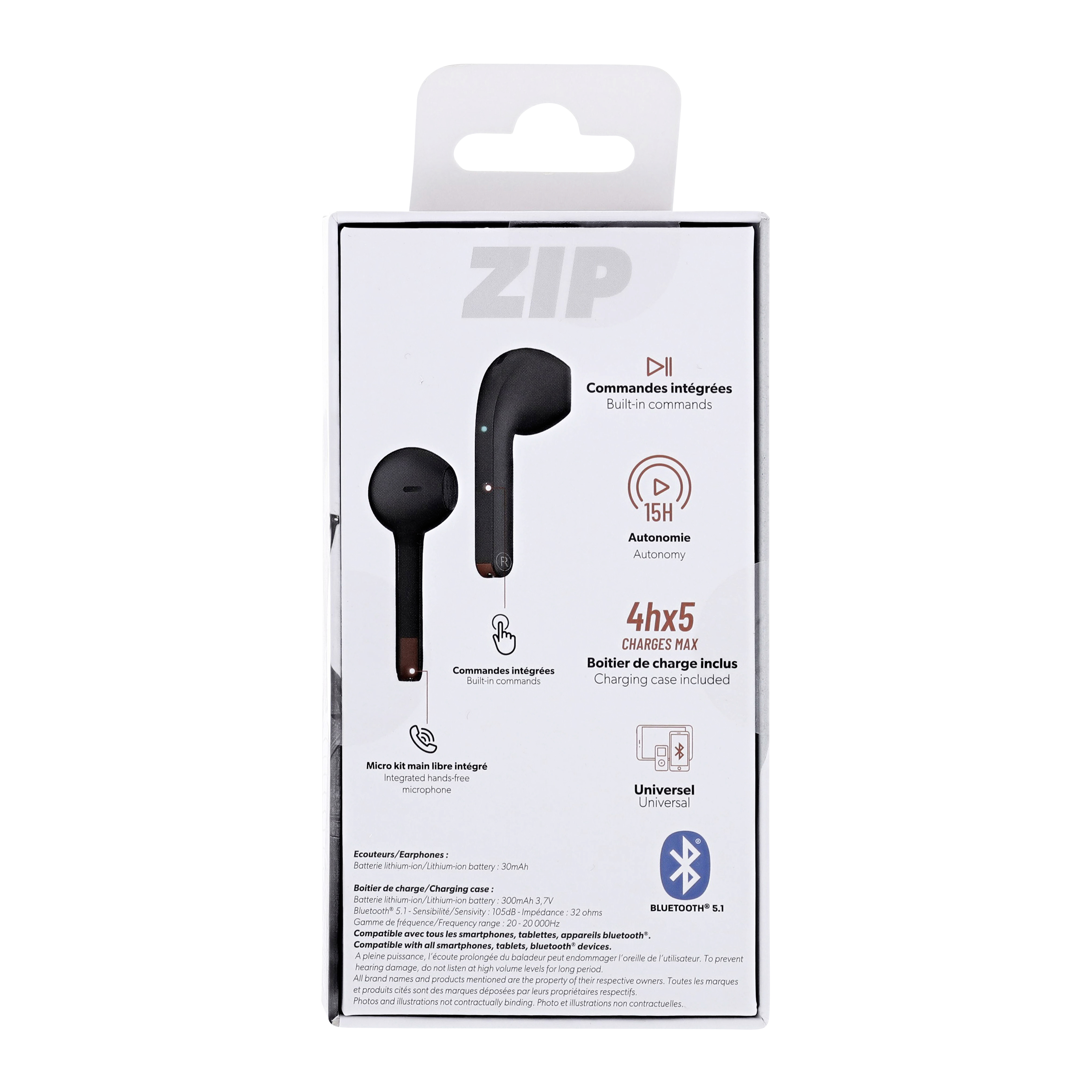 | Libellé | Ecouteurs TWS ZIP noir |