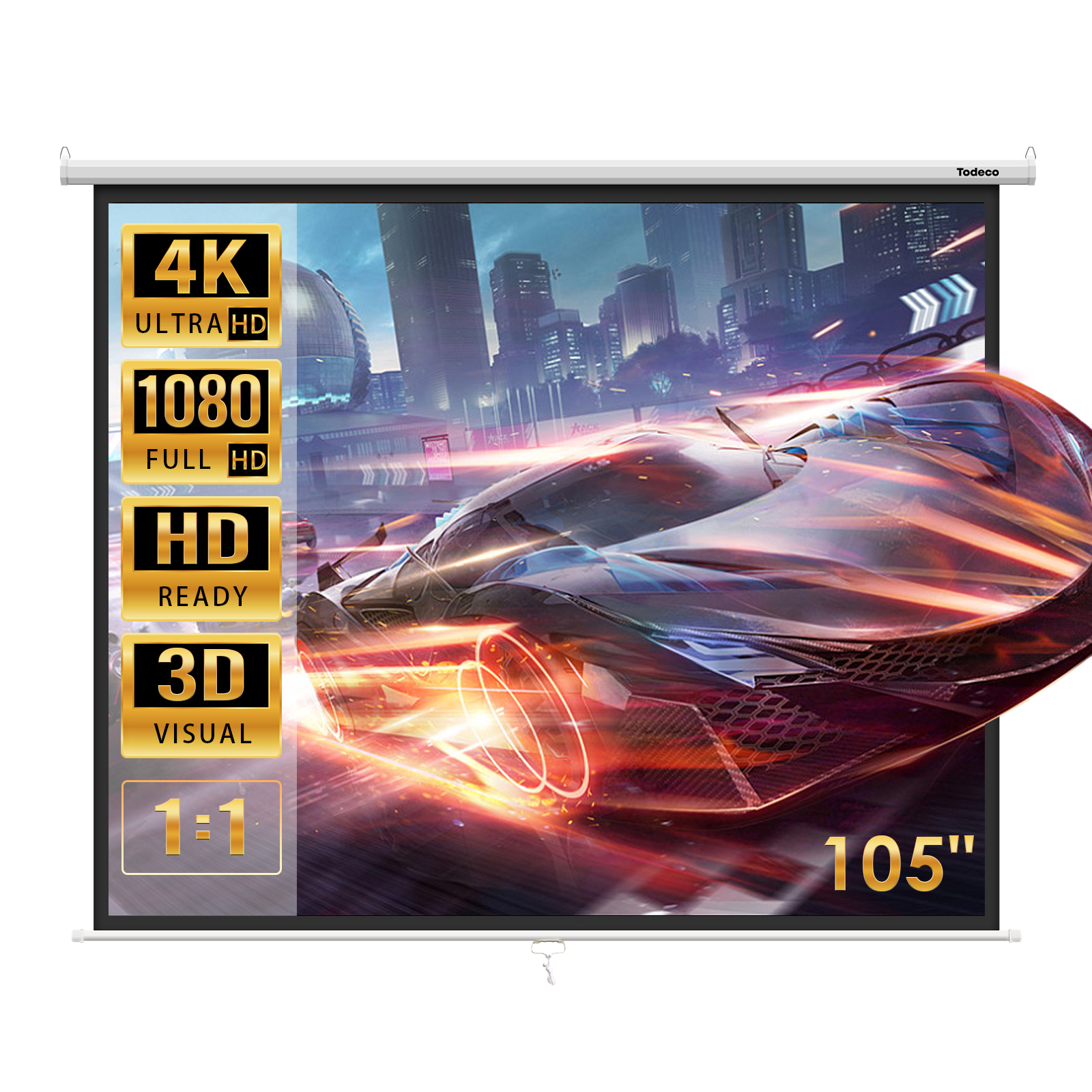 Écran de Projection 105 Pouces, Manuel Enroulable, Fixation Mur ou Plafond, pour Home Cinéma et Entrepris