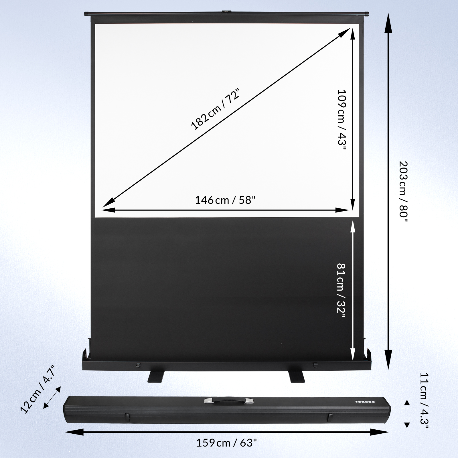 【Format Et Taille Flexibles】Cet écran diagonal de 60 pouces offre un généreux espace de visionnement de 121 x 91 cm au format d'écran polyvalent 4:3. Il peut facilement être ajusté au format 16:9 en modifiant la hauteur de l'écran de projection. Le matériau entièrement noir élimine efficacement la pénétration lumineuse et sa compatibilité universelle le rend adapté à la plupart des projecteurs LED, LCD ou DLP disponibles sur le marché.