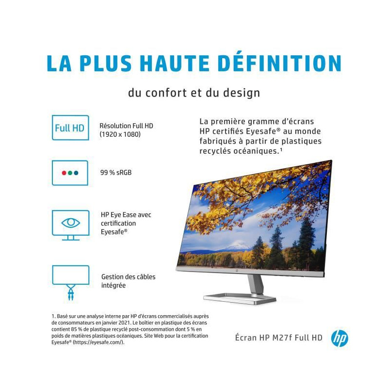 | Libellé | Ecran HP V27i 27'' Full HD - 300 nits - 60Hz - IPS - 5ms |