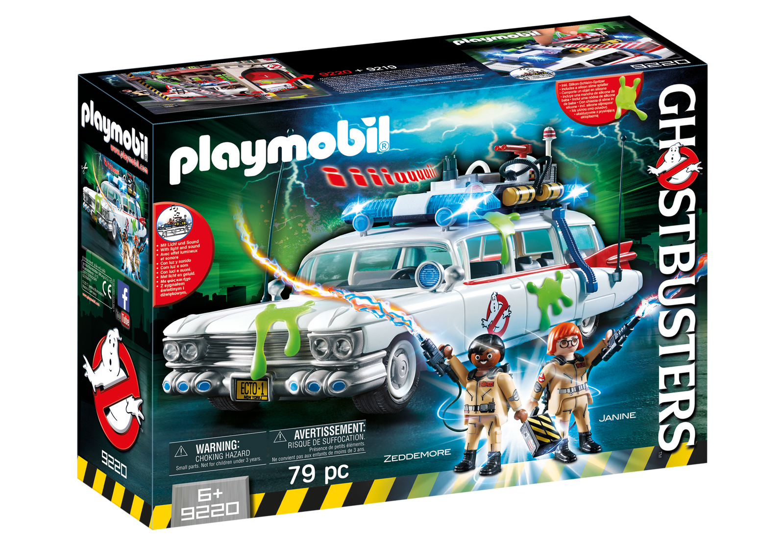 Ils sont de retour ! Qui vas-tu appeler ? ... Véhicule d'intervention des héros Ghostbusters avec sirène et effets lumineux. Avec les agents Winston Zeddemore et Janine Melnitz dans leurs combinaisons Ghostbusters. Le module de son et lumière nécessite 3 piles 1,5 V AAA (non fournies). Dimensions: 33 x 12,5 x 13 cm (LxPxH). Comprend deux sacs à dos Proton Pack et armes à Proton, un piège à fantôme, le détecteur PKE pour détecter l'énergie paranormale des fantômes et des projections d'Ecto-Plazm qui se fixent sur une paroi lisse. Ghostbusters & © 2018 Columbia Pictures Industries, Inc. All rights reserved.