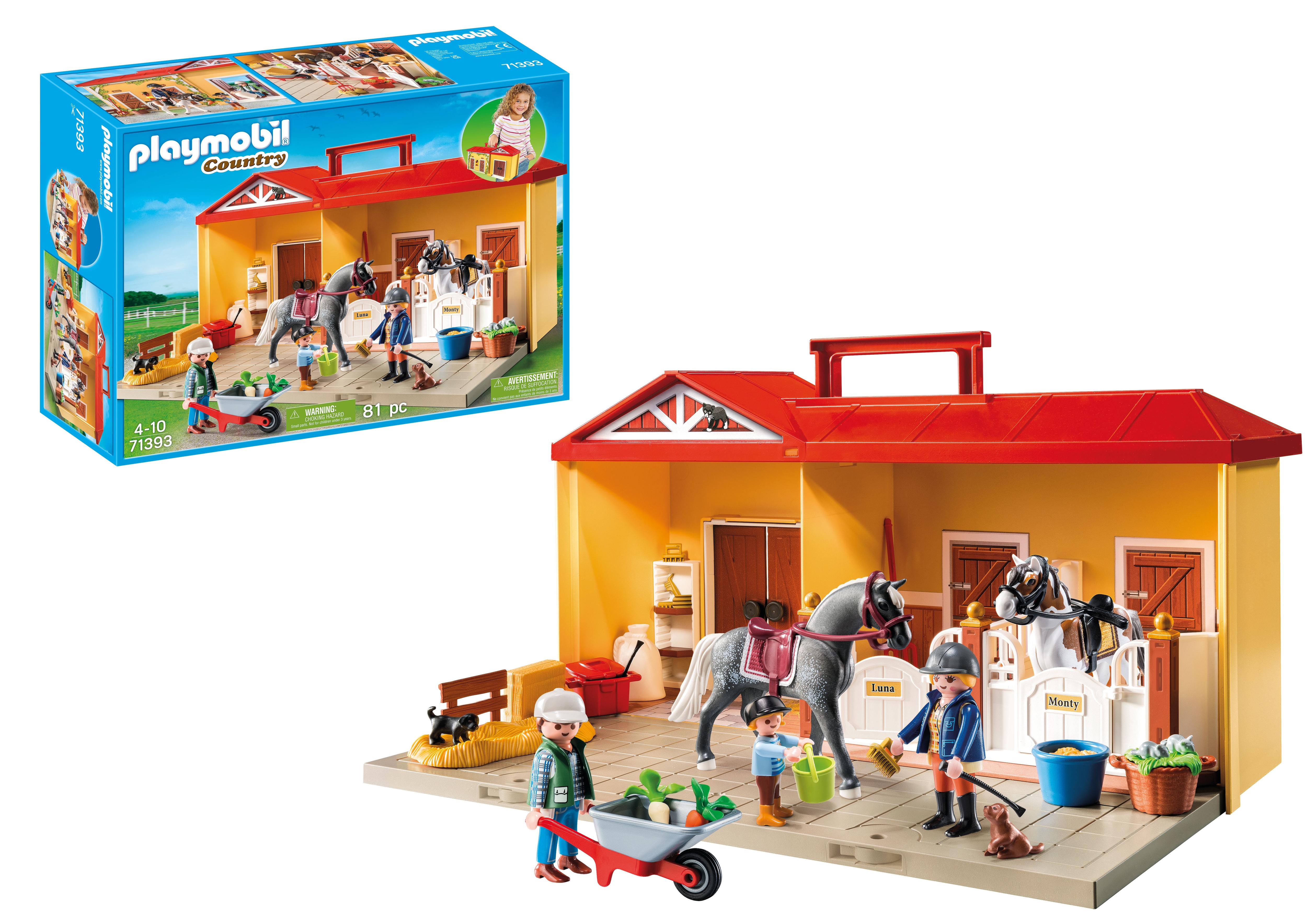 Plus produit L’écurie se referme pour être facilement transportable La poignée intégrée au toit facilite le transport Comprend deux chevaux, deux chiots…