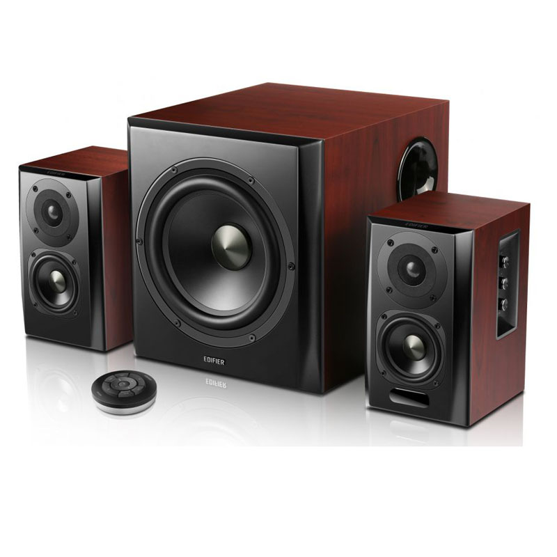 Edifier S350DB. Canaux de sortie audio: 2.1 canaux, Puissance évaluée de RMS: 150 W, Utilisation recommandée: Universel. Type d'appareil d'amplification: Amplificateur, Facteur de forme de l'appareil d'amplification: Intégré, Gamme de fréquence d'amplification: 30 - 20000 Hz. Puissance des satellites RMS: 80 W, Gamme de fréquence du haut-parleur satellite: 160 - 20000 Hz, Diamètre de haut-parleur d'aigu satellite: 1,91 cm (0.75"). Puissance RMS du Subwoofer: 70 W, Gamme de frequence de Subwoofer: 40 - 160 Hz, Dimensions du caisson de basse (L x P x H): 265 x 298 x 312 mm. Source d'alimentation: Secteur, Tension d'entrée AC: 100 - 240 V, Fréquence d'entrée AC: 50 - 60 Hz